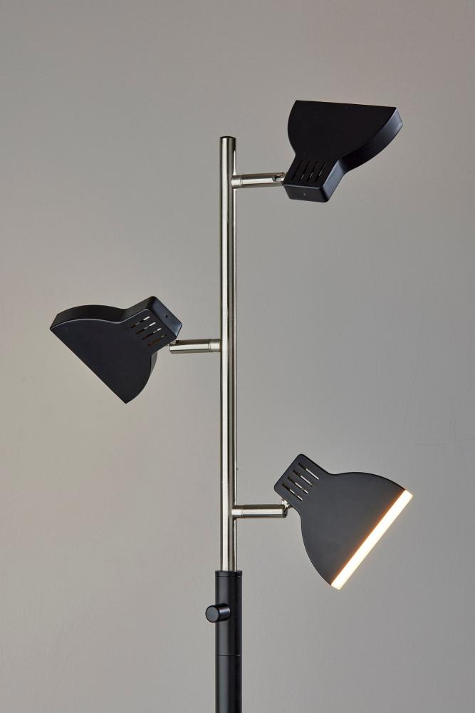 Upgrade your lighting game with the SL3975-01 Slender LED Tree Lamp, a striking combination of modern design and practical functionality. This lamp features a sleek black and brushed steel finish that effortlessly complements contemporary decor. Three slender black shades house energy-efficient 4W integrated LEDs, providing versatile illumination for any setting. Customize your lighting experience with the adjustable shades, allowing you to direct light exactly where you want it. The 4-way rotary switch on the lamp's tube offers four distinct settings, including one shade light, two shade light, all shade light, and off, ensuring you have the perfect lighting ambiance for every moment. Elevate your space with the Slender LED Tree Lamp's minimalist aesthetics and cutting-edge lighting technology.