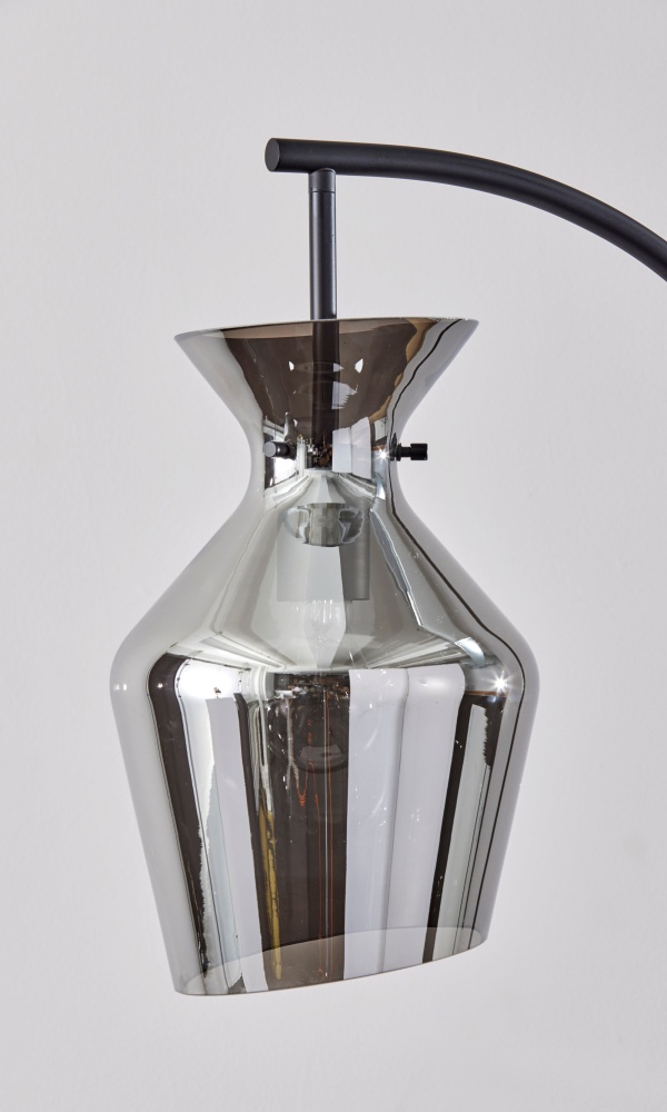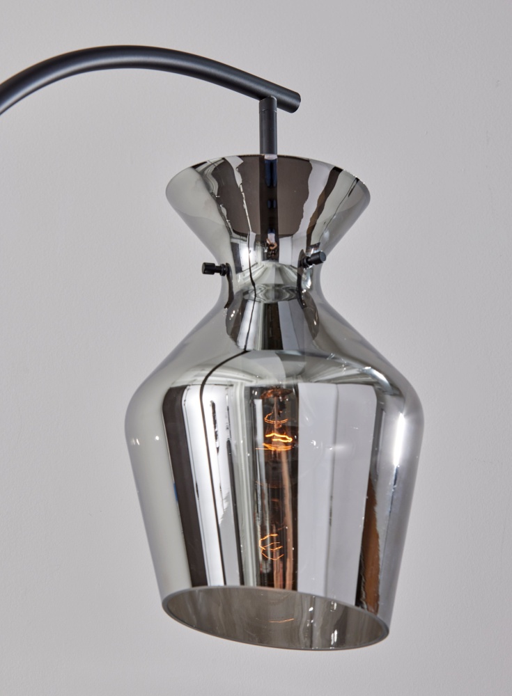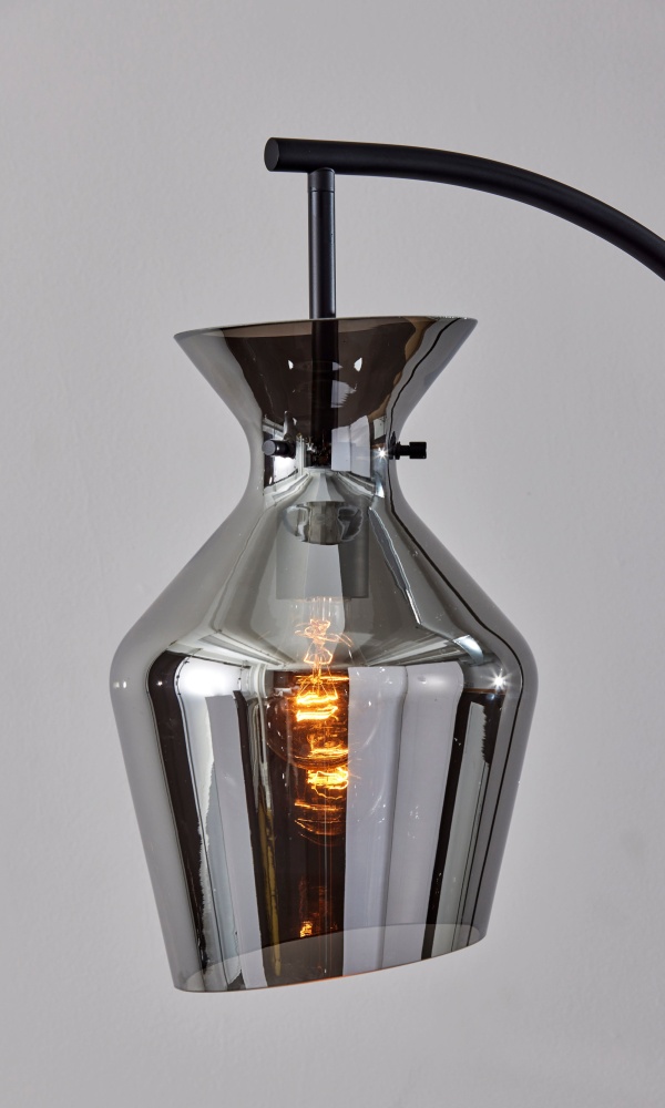 Illuminate your living space with the Tate Floor Lamp—a beacon of contemporary sophistication and understated elegance. Featuring a sleek Black finish and a Mirrored smoked glass shade, this lamp exudes modern charm while infusing your room with warm, inviting light. Standing at 65 inches tall with a depth of 19 inches, its compact yet commanding presence makes it an ideal addition to a bedroom or living room. Complete with an on/off rotary switch conveniently located on the pole, the Tate Floor Lamp offers both style and functionality in perfect harmony.