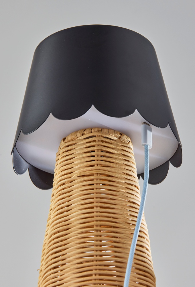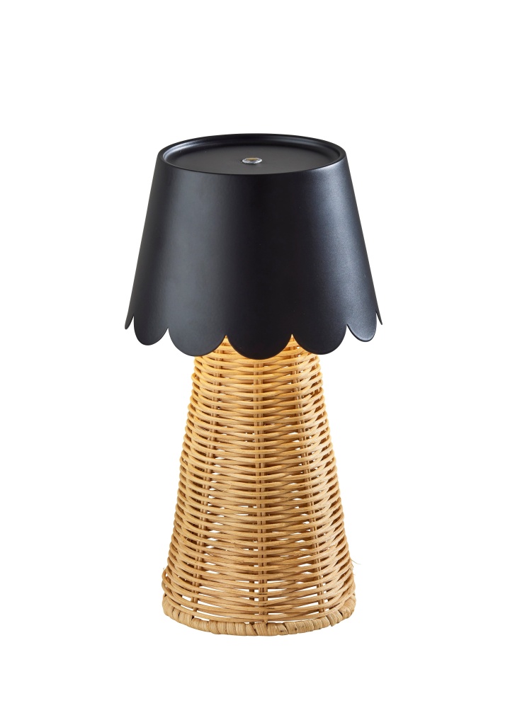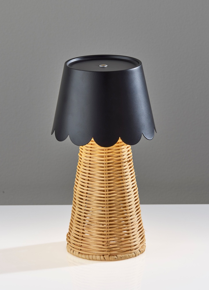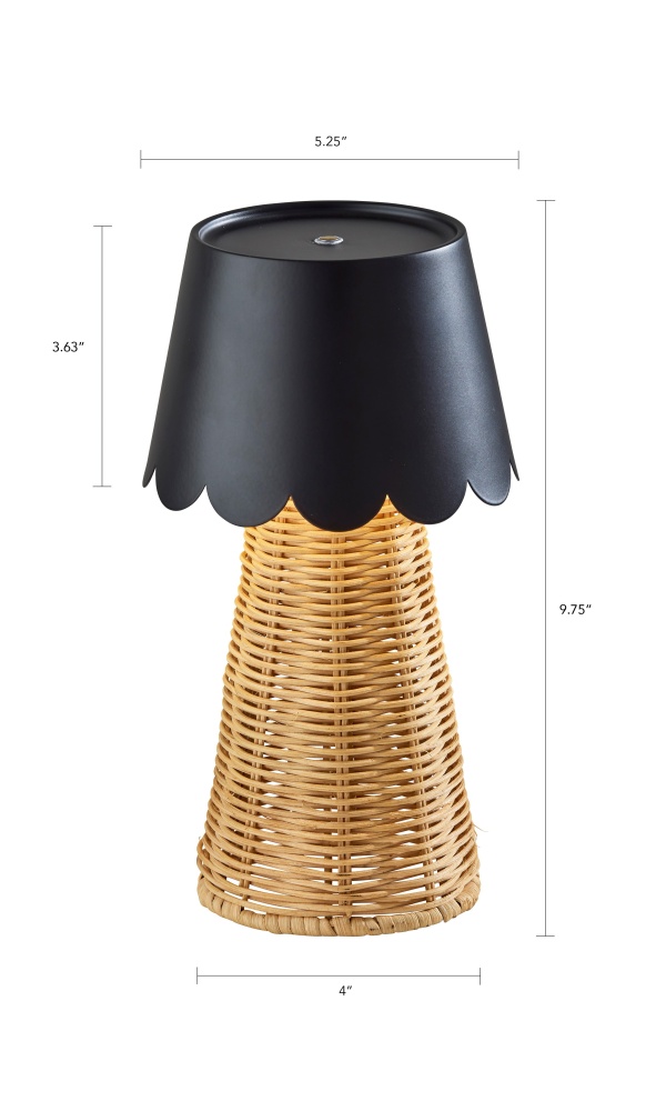 Add a touch of natural charm and modern functionality with the Tory LED Cordless Table Lamp. Featuring a light brown wicker-style rattan base and a scalloped-edge metal shade, Tory effortlessly blends rustic texture with refined design. Available with either a black or white shade, this 9.75" tall lamp is equipped with a 3-level touch switch to adjust brightness to your mood. Cordless and rechargeable, it provides up to 16 hours of soft illumination on the low setting and 5 hours on high. With a 4.5-hour charging time, it’s the perfect portable companion for cozy corners, dinner parties, or outdoor evenings.