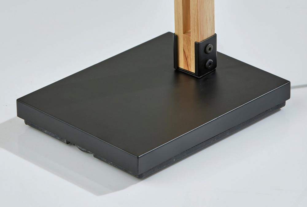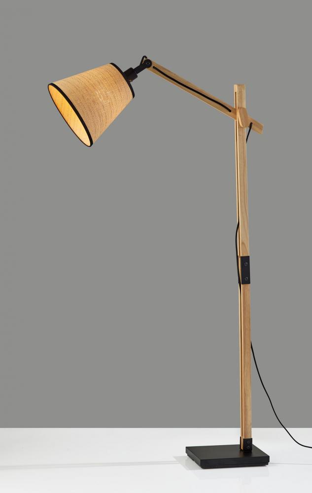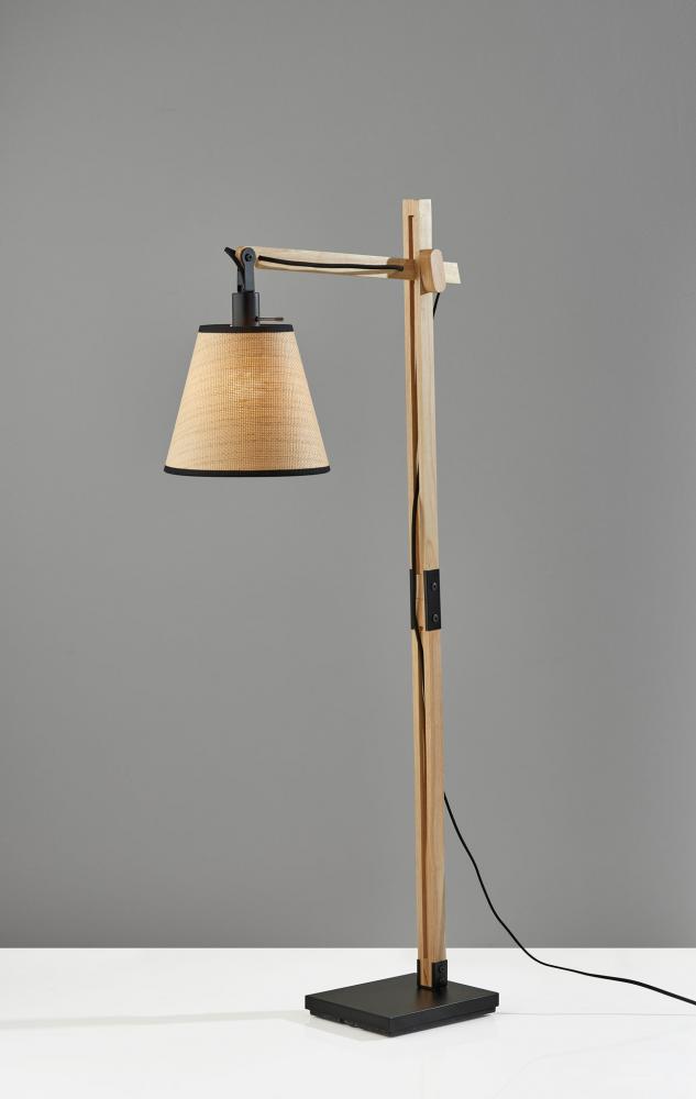 Introduce the Walden floor lamp into rustic, contemporary, or eclectic spaces. Wooden joints adjust the balance arm to change the lamp height and angle of the shade to best serve your room. The black metal base and accents enhance an industrial style, while the natural wood body and natural woven paper shade with black trim along the top and bottom soften the look. For a unique style, the black fabric-covered cord threads through the square wood post body and drapes out the back. A 3-way rotary switch is located on the socket, allowing you to adjust the brightness between low, medium, high, and off to suit your needs. The Walden floor lamp is also available with a black wood construction for a monochrome look. Complete your decor with the coordinating Walden table lamp.