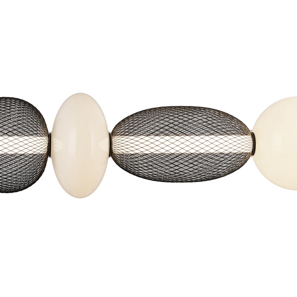 Elevate your space with the sophisticated charm of the Ace LED linear type chandelier. This masterpiece combines an opulent white glass shade with a bold black mesh design, encasing a radiant LED tube that casts a warm, inviting glow. Its rich black metalwork and adjustable wire offer timeless elegance with versatile functionality, making it a perfect centerpiece for any setting.