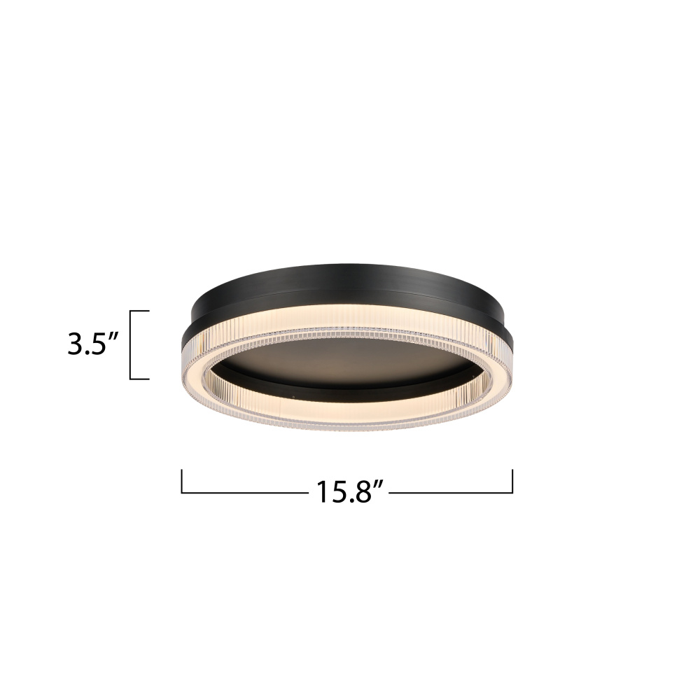 Elevate your space with the modern elegance of the LED flushmount from the Ari Collection. Its sleek black frame and ribbed clear bottom lens create a soft, mesmerizing glow. This model has a 3CCT switch to choose the color temperature of your preference (3K, 4K, 5K).