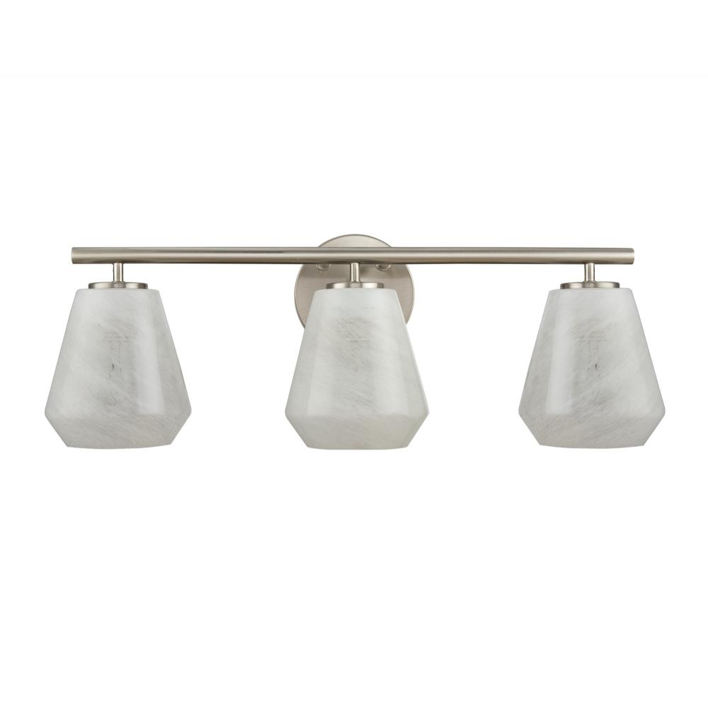 Step into timeless elegance with the wall sconce from the Brooke Collection. Its brushed nickel frame exudes modern sophistication, perfectly paired with the ethereal “Wispy White” glassware that gently diffuses light like a soft cloud at dusk. A beautiful way to update your bathroom or vanity area.