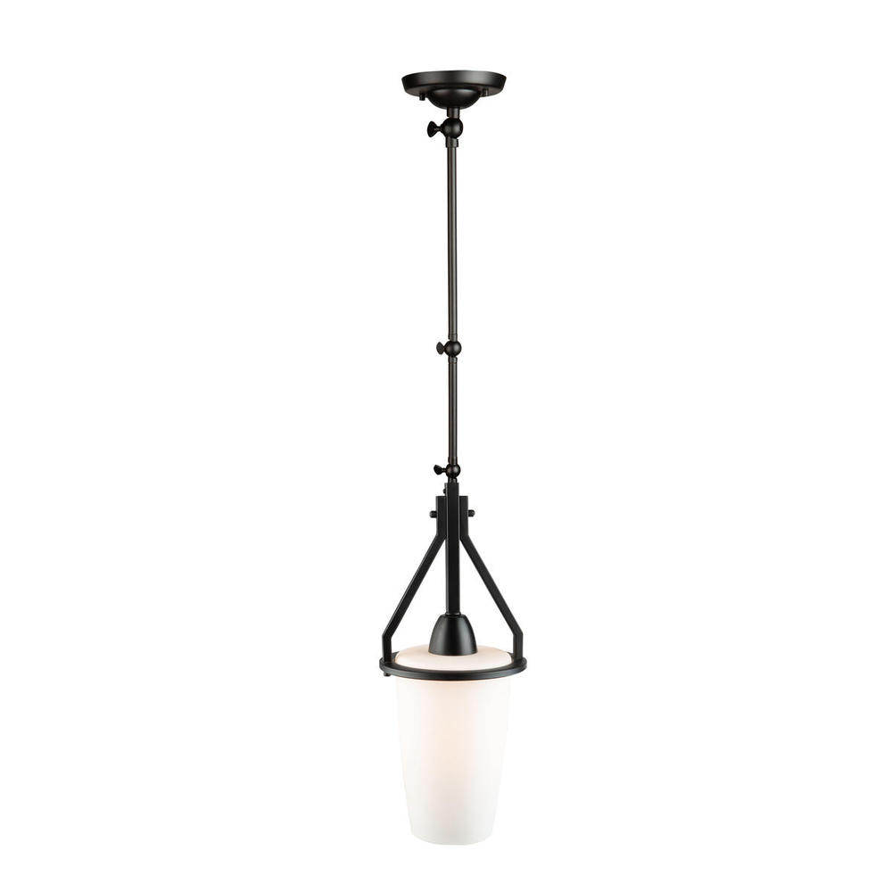 This model from the "Brydon Collection" features matte white tapered cylinder glassware. The metal work on this industrial looking fixture is black and has multiple hinges for adjustability. This model can be a wall bracket or straight rod pendant (extra 12" rod included for height if needed). If hanging as a wall sconce you can adjust the height and extension to your desired position.