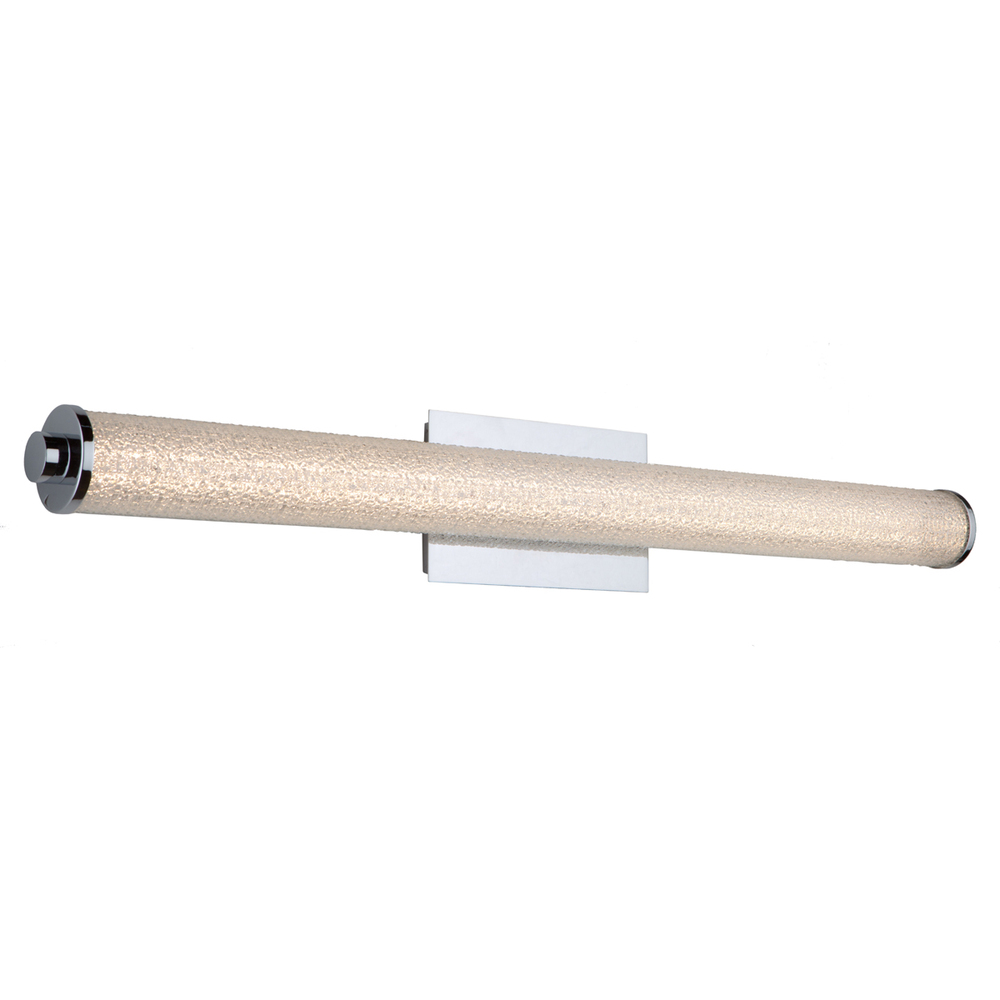 The "Buchanan" bathroom vanity collection features sparkling crystalline glassware that is illuminated by bright LED. The back plate and sides are plated in shiny chrome. Super energy efficient and fantastic color rendition (CRI 90). Delivered Lumens: 2185