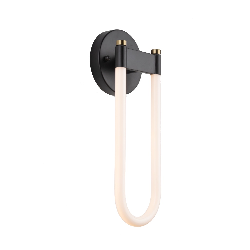 The Cascata Collection, designed by Kevin Kraemer, features a sleek and minimalist design, combining precision craftsmanship with modern aesthetics. The frame is black with brass accents. The bright LED illuminated drapes throughout giving this collection an illusion of weightlessness. This eye-catching collection is a perfect complement to any surrounding. Model shown is a wall sconce.