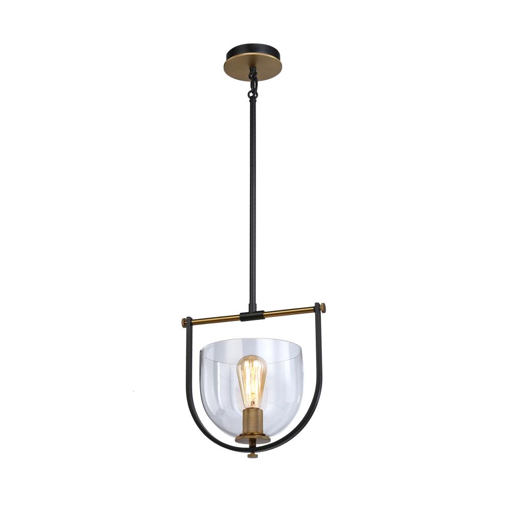 The Cheshire Collection is a spectacular grouping of chandeliers designed by Kevin Kraemer. The frames are black and complemented with brass. There is fine attention to all the details from the frame shape matching the curves in the glass to the exquisite knural parts on the candle covers and knobs. (Also available in black with nickel accents). Single pendant shown.