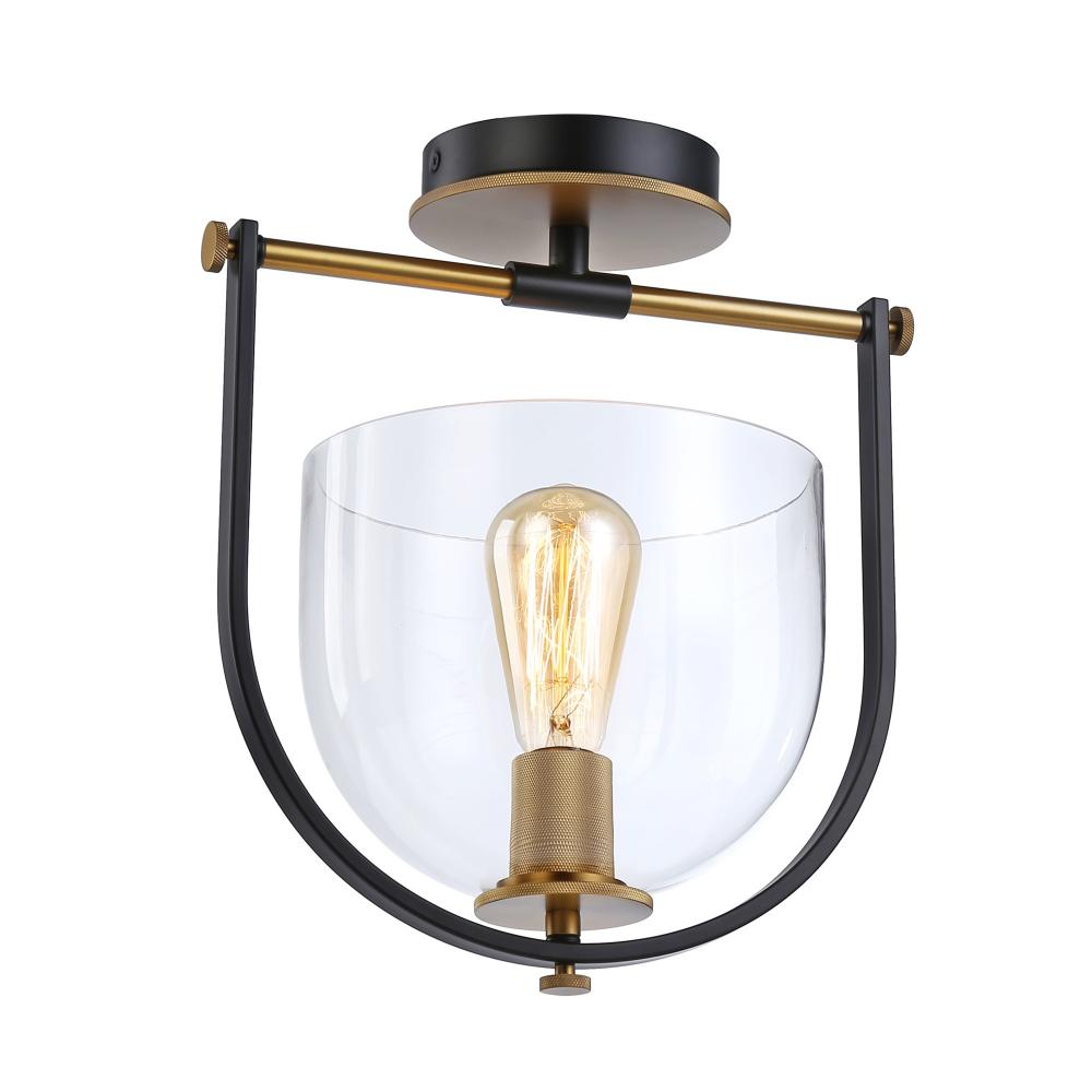 The Cheshire Collection is a spectacular grouping of chandeliers designed by Kevin Kraemer. The frames are black and complemented with brass. There is fine attention to all the details from the frame shape matching the curves in the glass to the exquisite knural parts on the candle covers and knobs. (Also available in black with nickel accents). Semi Flushmount shown.