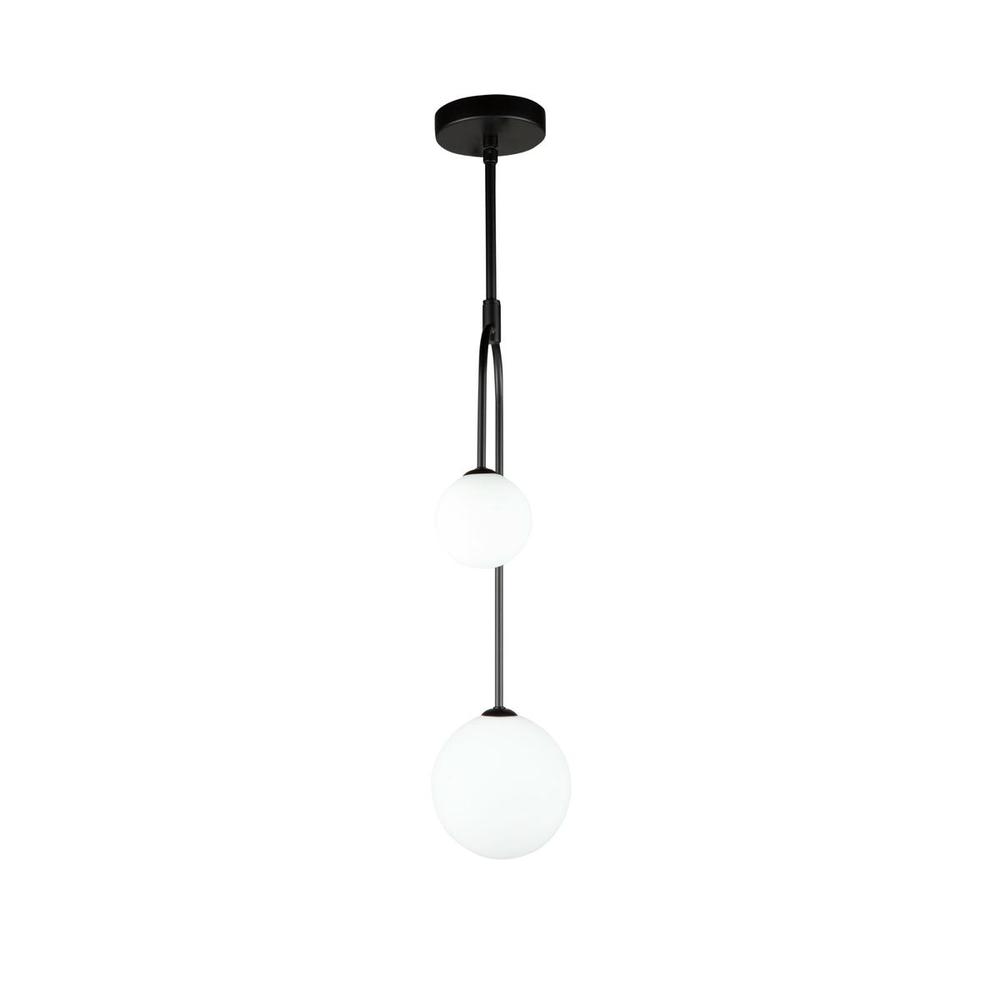 A perfect compliment to any environment is the airy and clean looking "Comet" collection. This series can definitely be a focal point but not distracting. This collection features thin matte black arms and spherical white glassware. This glass is illuminated by bright G9 LED bulbs. Model shown is the double pendant. Also part of this series is the 6 light chandelier.