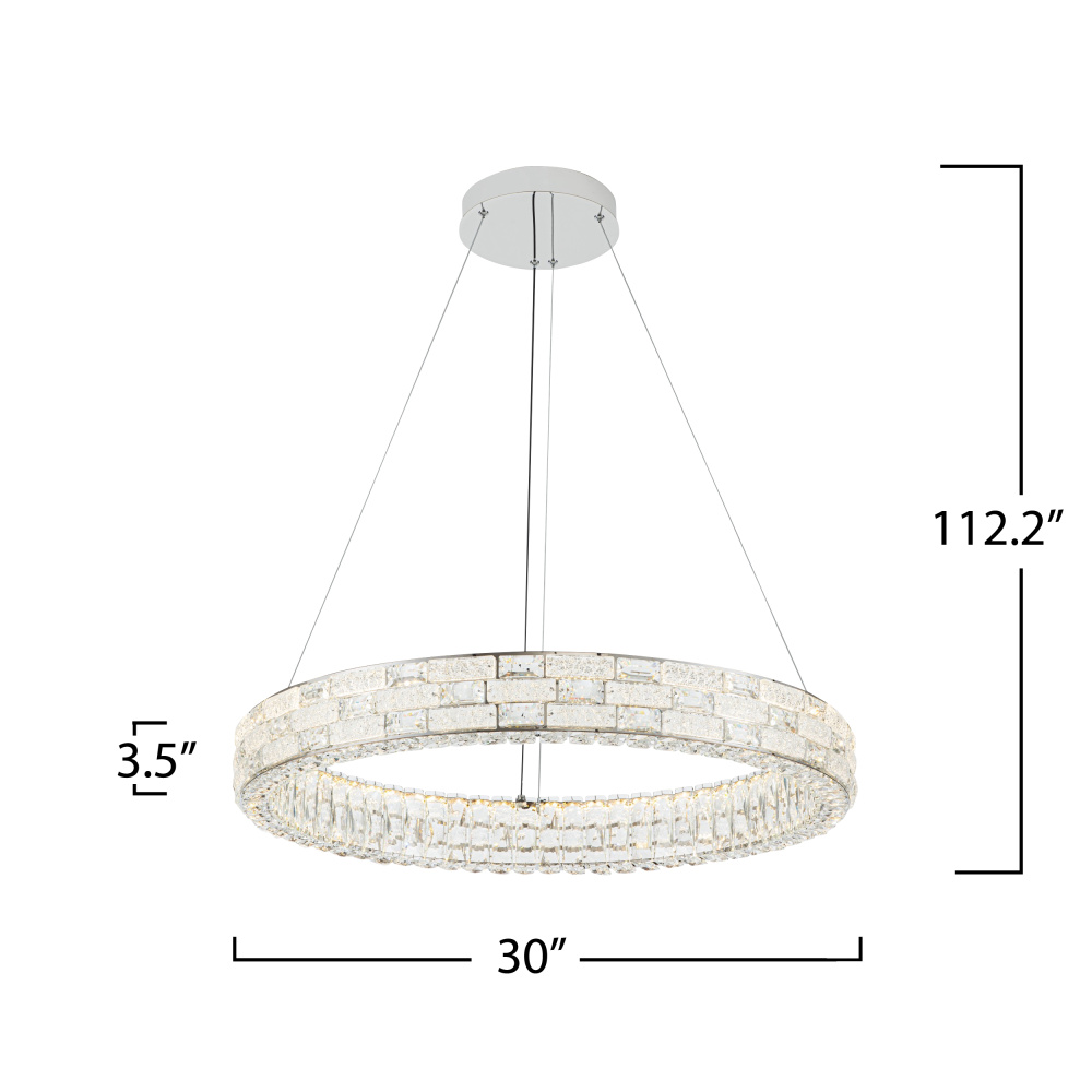 Glistening like a crown of starlight, this LED crystal chandelier from the “Elegance” collection offers a breathtaking harmony of luxury and functionality. Its polished nickel frame embraces a dazzling array of crystals, while the 3CCT switch allows you to tailor the ambiance with warm, neutral, or cool light (3K, 4K, 5K). Suspended gracefully on aircraft-type cables with an intuitive “push-pin” system, it promises both beauty and effortless adjustment for any setting.