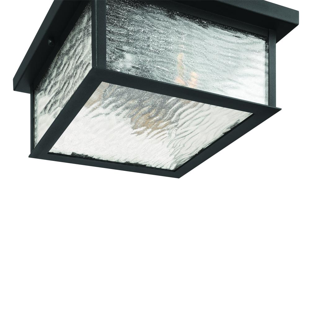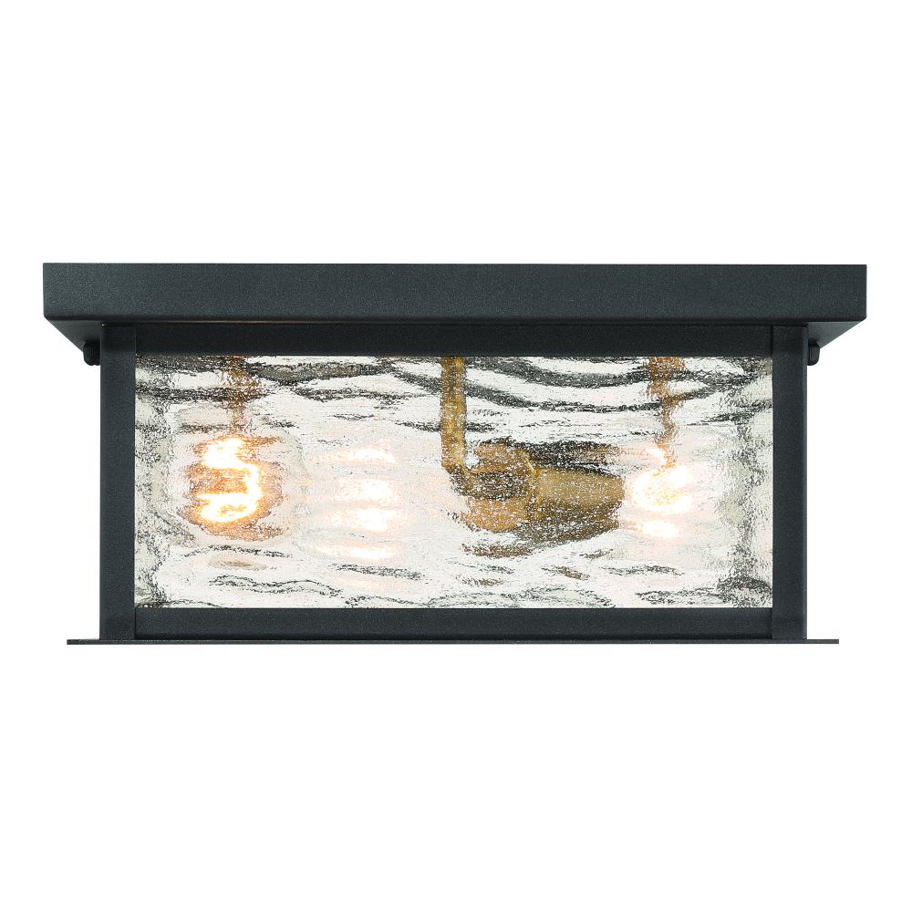 The “Estate” Collection outdoor flushmount radiates classic allure, with its black metal frame offering a striking contrast to the mesmerizing water glass panels. Encased within, vintage brass candle covers and intricate metalwork glow warmly, evoking a sense of nostalgic charm. Perfect for enhancing any outdoor space, this sconce blends classic sophistication with modern durability.