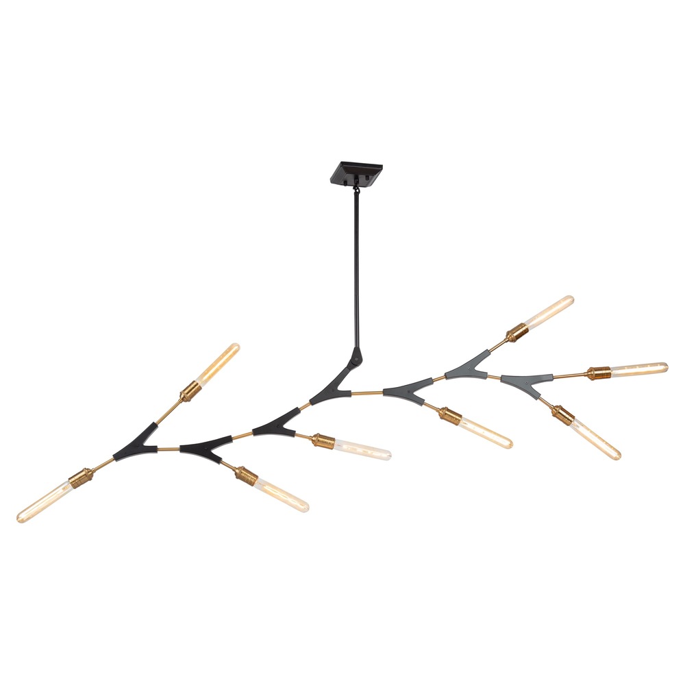 Organically shaped like tree branches, the Filiali collection 8 light chandelier features a black frame with harvest brass accent and socket covers. Can be directionally configured (arms slightly adjustible with allen key)