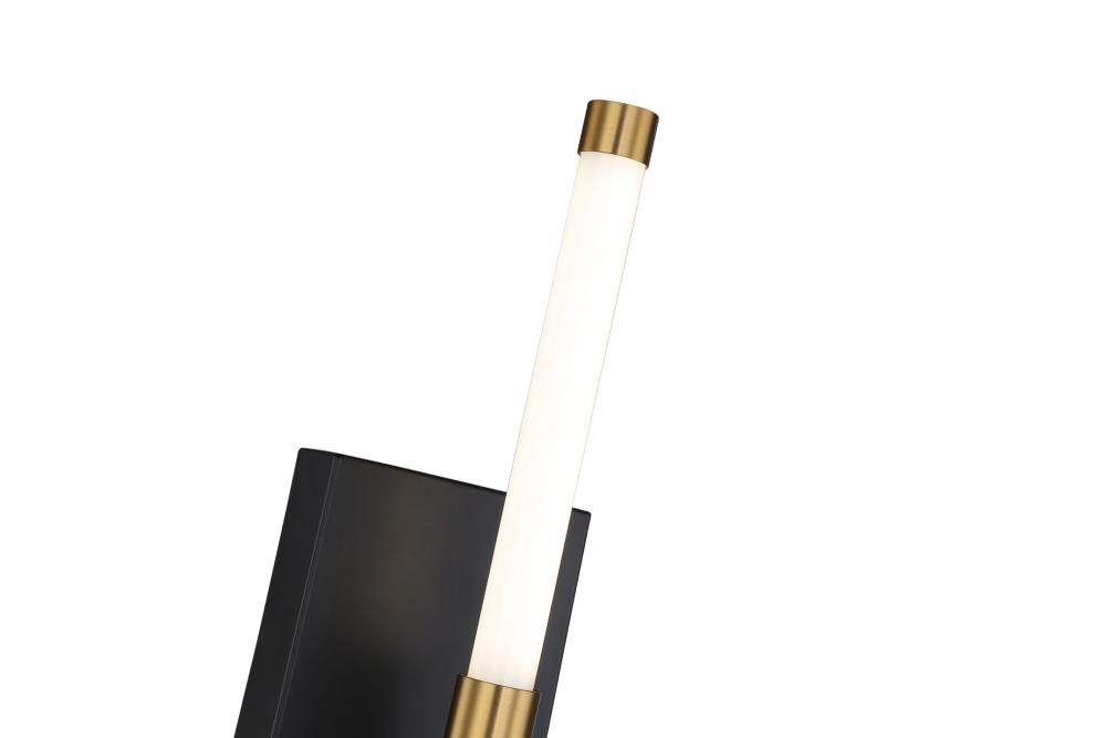 The Infiniti Collection by Steven Sabados of the S&C design firm, is stunning and quite unique. The frame is a matte black and the candle sticks are illuminated by bright energy efficient LED which have brass accents on both ends. Single wall sconce shown.