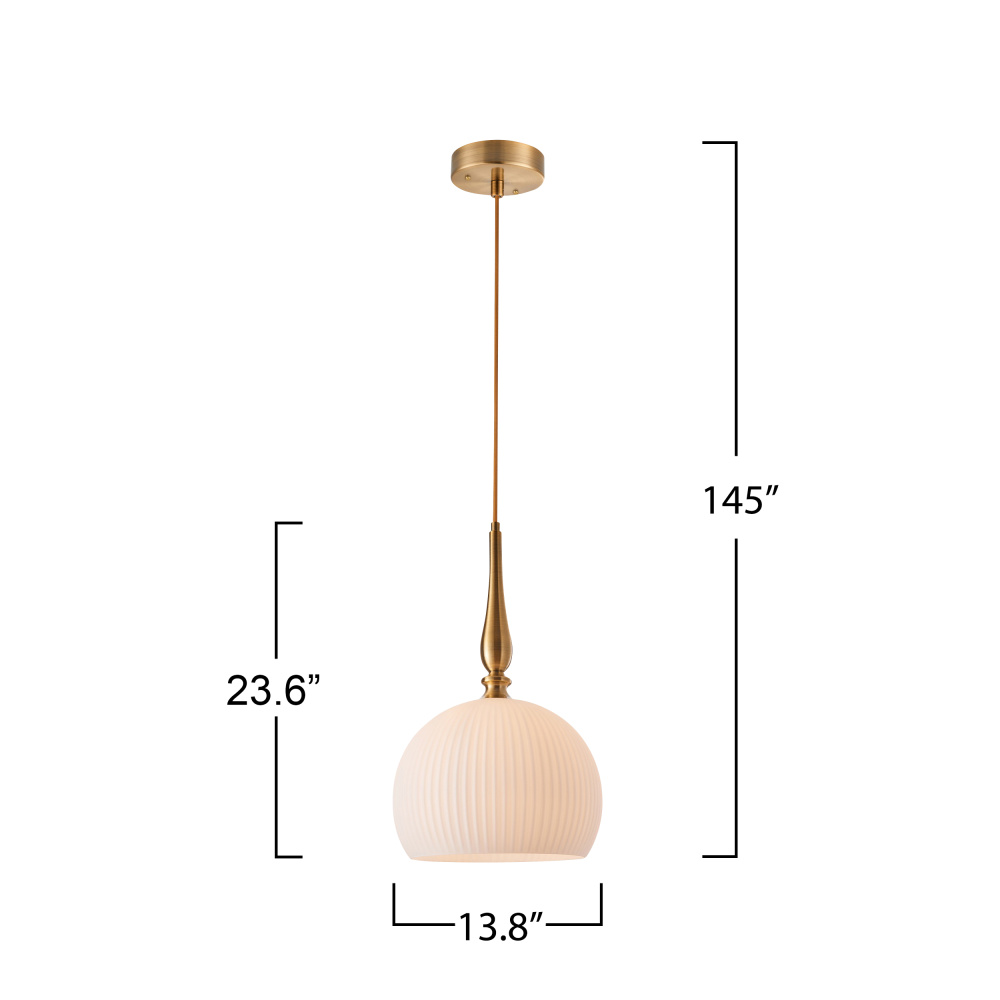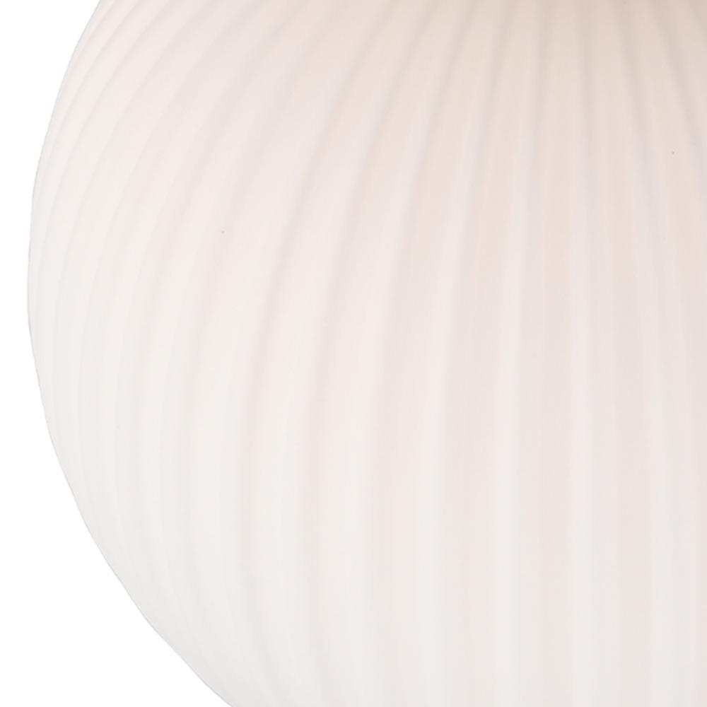 The Kate Pendant Light is a statement of refined elegance, featuring a brushed brass holder that supports its striking white ribbed spherical glassware. The textile-covered wire complements the design while offering effortless height adjustment for versatile placement. This large version is perfect for creating a bold yet sophisticated ambiance in spacious areas. The Kate collection also includes a smaller size, allowing you to achieve a cohesive look in any space.