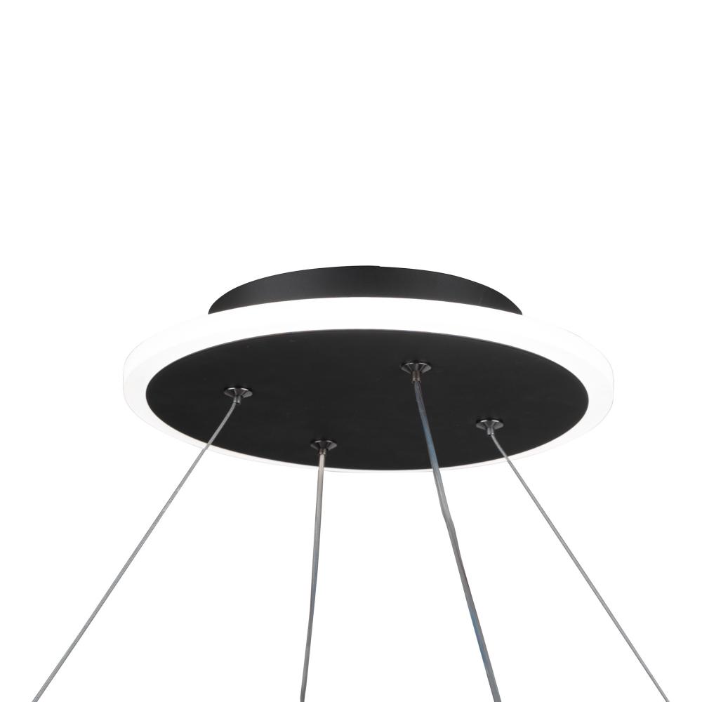 The Lazio collection is sleek and stylish from any angle. This pendant type chandelier has a circular frame is finished in a semi matte black, and is illuminated by bright LED energy efficient technology. It is suspended by thin aircraft table adjustable cables. The beauty of this chandelier is that is controlled by EZ-Link smart mobile technology, which uses the Smartlife app on any mobile device or smart speaker. With the app you can control the front colour temperature, scheduling, dimness, on, off… the functions are endless. (31.5”diameter model shown, also available in a 23.5” diameter version)