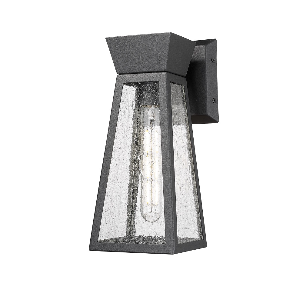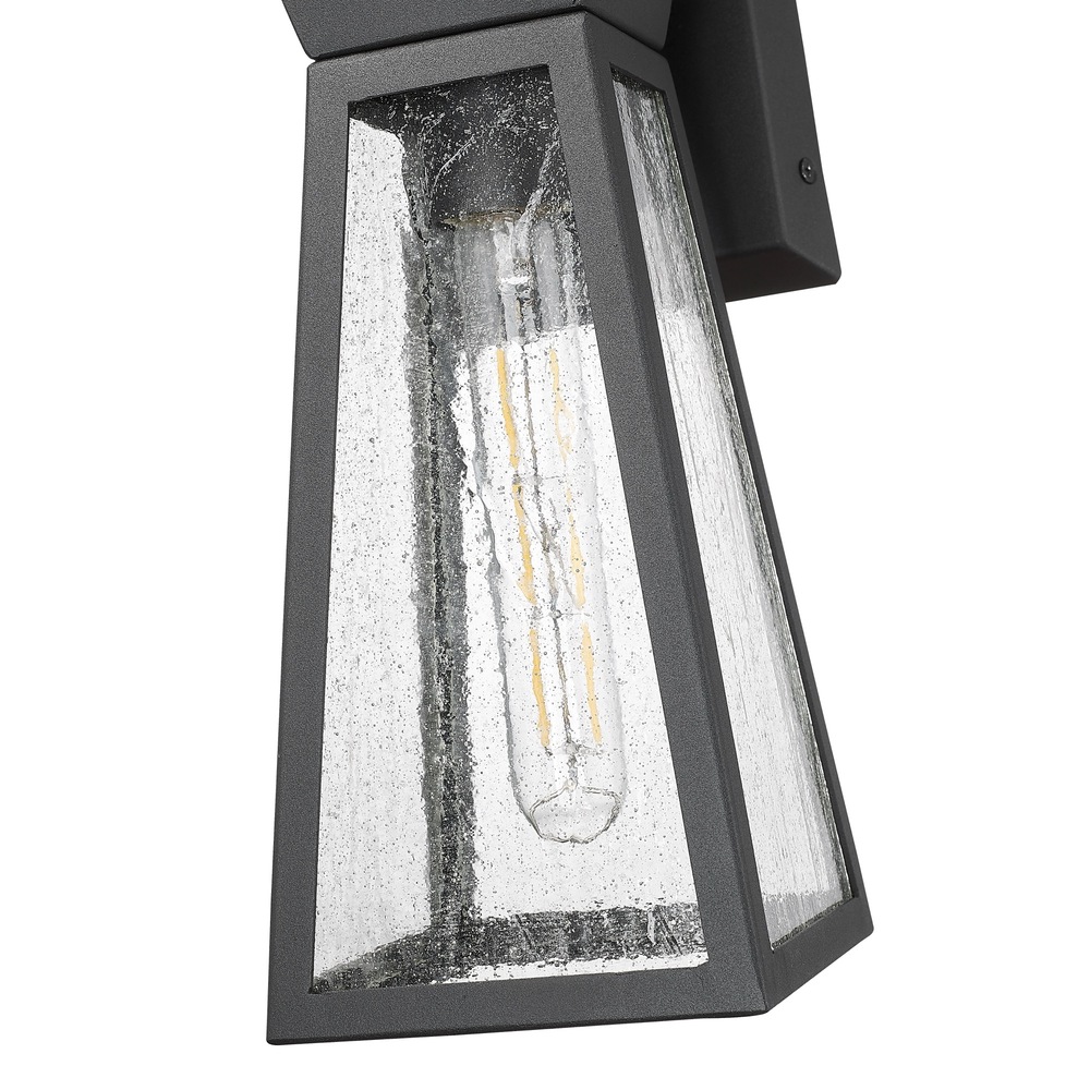 The Lucian collection, designed by Kevin Kraemer, is a distinctive outdoor lantern series renowned for its distinct architecture. These lanterns showcase a rich black finish complemented by the use of lightly clear seeded glassware, adding both style and texture to outdoor spaces. This product is backed by a 25 year warranty on corrosion and 5 year warranty on paint defects. Small size wall sconce shown (medium and larger sizes also available)