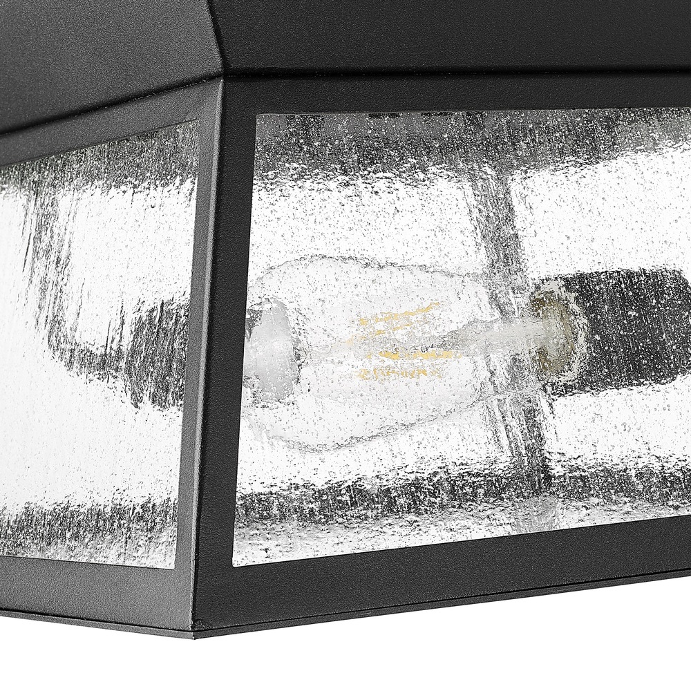 The Lucian collection, designed by Kevin Kraemer, is a distinctive outdoor lantern series renowned for its distinct architecture. These lanterns showcase a rich black finish complemented by the use of lightly clear seeded glassware, adding both style and texture to outdoor spaces. This product is backed by a 25 year warranty on corrosion and 5 year warranty on paint defects. Flushmount shown. (3 different size matching wall sconces are available)