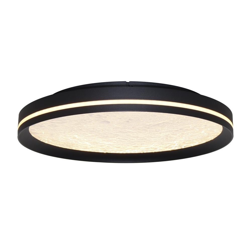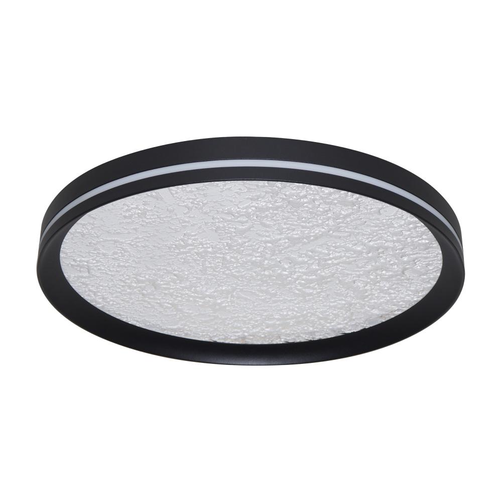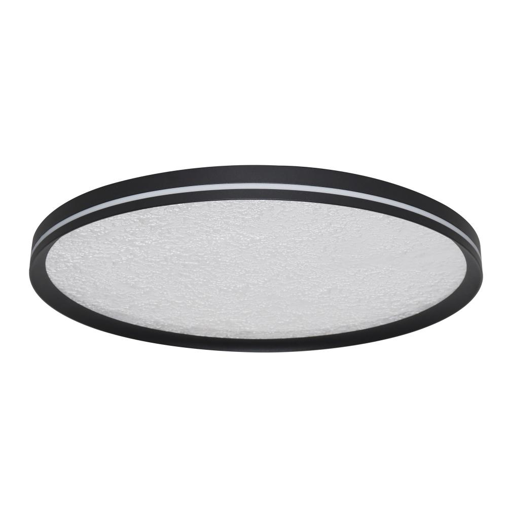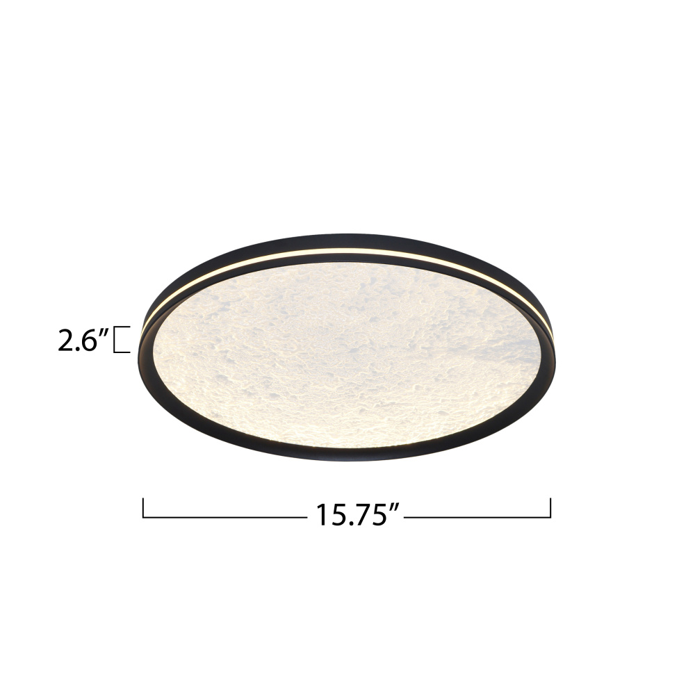 This LED flushmount from the Luna Collection is a celestial masterpiece, blending modern elegance with cosmic allure. Its black frame cradles a textured “moon crater” lens, through which a soft, glittering glow emanates, evoking the magic of starlit skies. A subtle side cutout allows ambient light to gracefully spill onto the ceiling, creating a halo-like effect that transforms any space into a serene sanctuary. The frame of this flushmount is black.