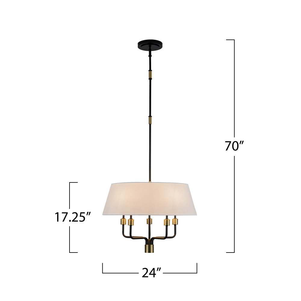 The Providence collection large pendant chandelier designed by the Lighting Pulse is a harmonious blend of timeless grace and contemporary refinement. Its hardback linen fabric shade softly diffuses light, casting a gentle glow that evokes a sense of serenity. The bold black frame, accentuated with warm brass details, adds a touch of refined charm, making it a perfect addition to any space seeking effortless sophistication.