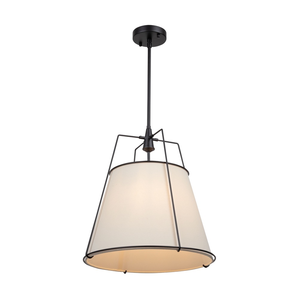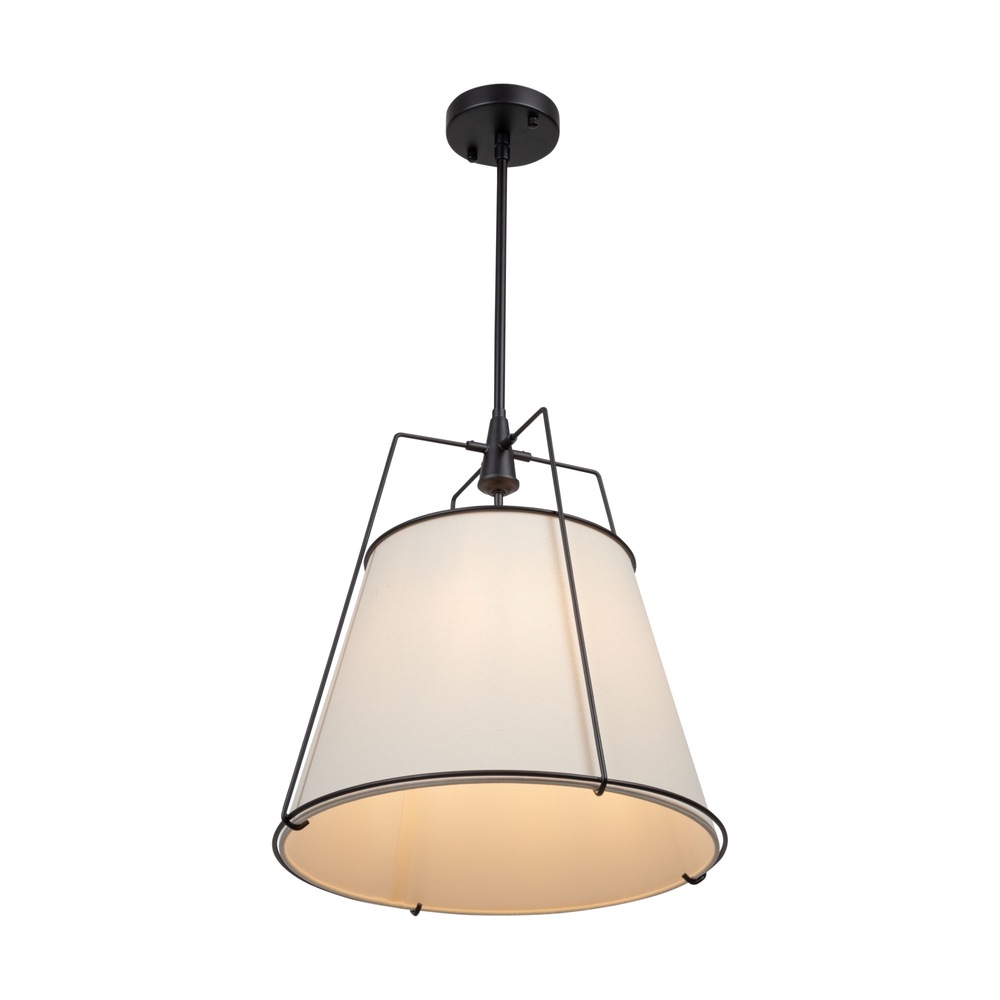 Designed by Steven Sabados (S&C), the Pullman Collection of linen shades is elegantly suspended by black metal frames, seamlessly combining classic and modern design elements. The high-quality linen shades, gently tapered and expertly crafted, diffuse light to create a warm and inviting ambiance. With their timeless elegance and versatile aesthetics, these shades add a touch of sophistication to any space they grace. The model shown is a 3 lite 17" diameter pendant chandelier. (also available with brass metalwork)