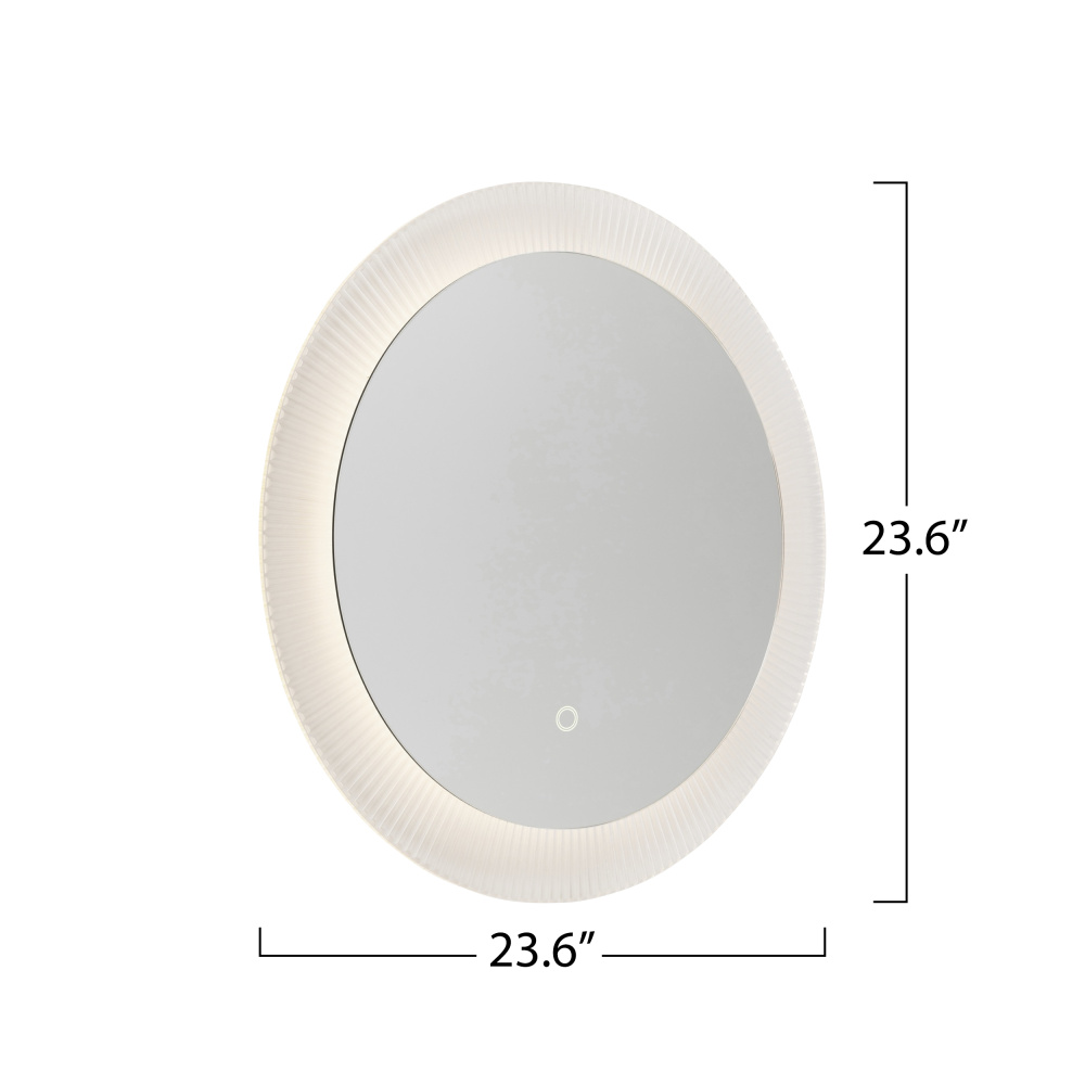 The Reflections collection LED mirror features a sleek design with a circular ribbed frame, seamlessly combining modern functionality with a touch of elegant aesthetics. This mirror has a “Smart Touch Switch” which allows dimming, on/off, and the ability to change the color temperature from 3000, to 4000 to 5000 kelvin.