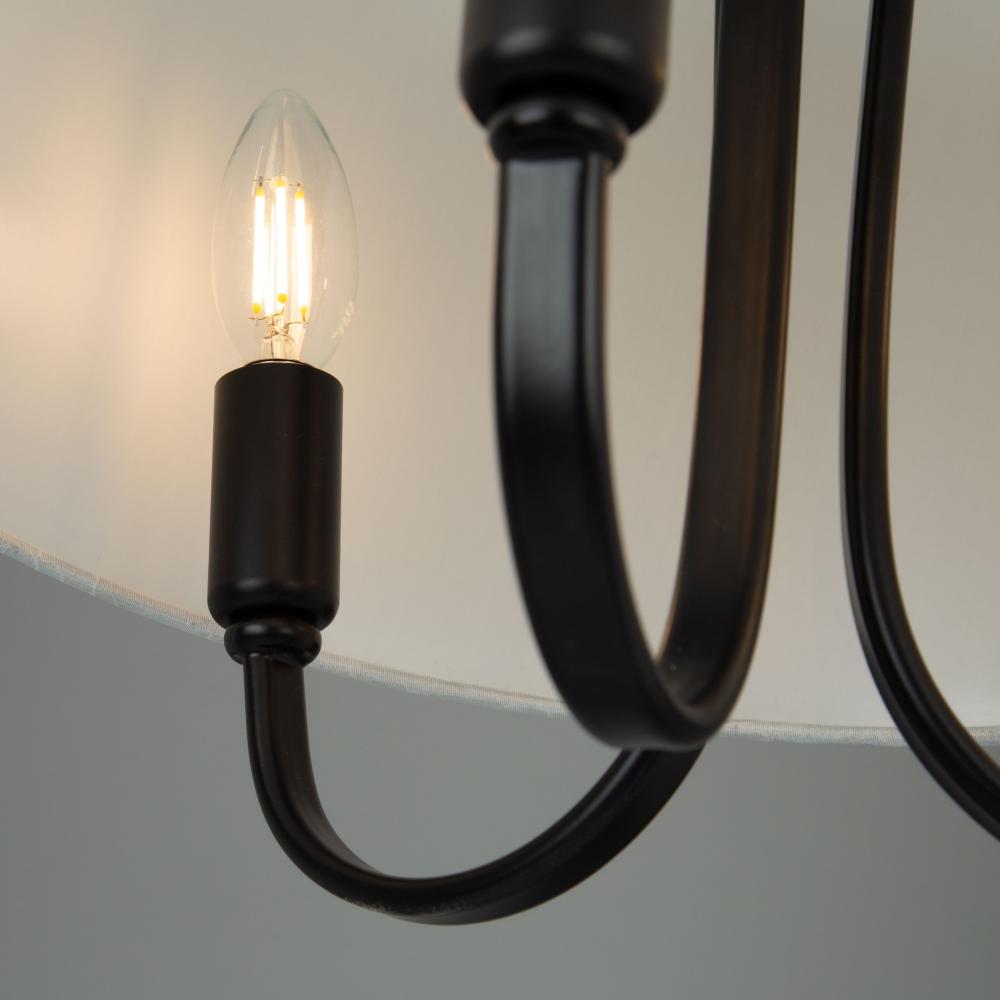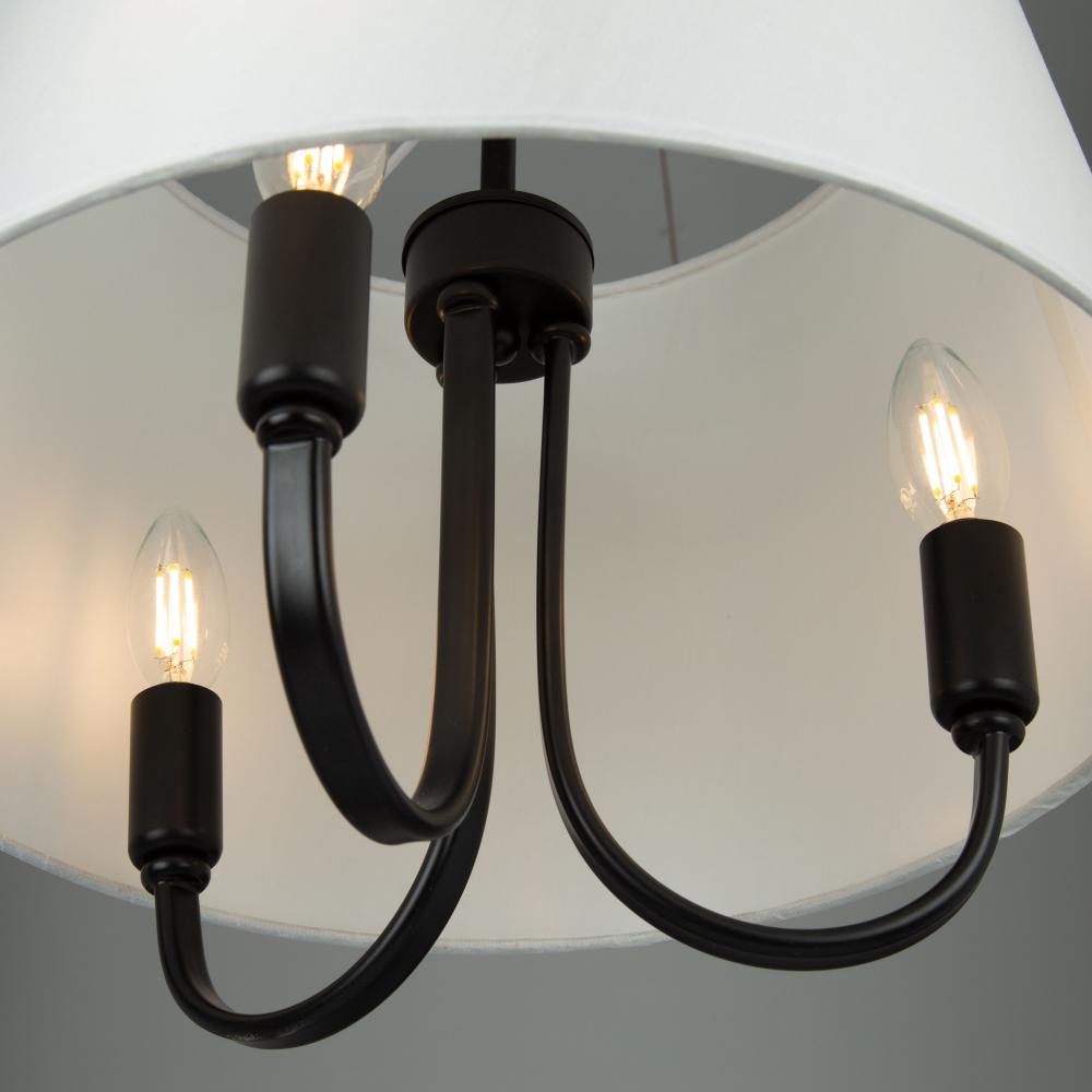 From the S&C design firm, with strict direction from Steven Sabados, the Rhythm Collection features a traditional type frame with flat tubular arms. The frame is finished in matte black and complimented with linen hardback white shades.
