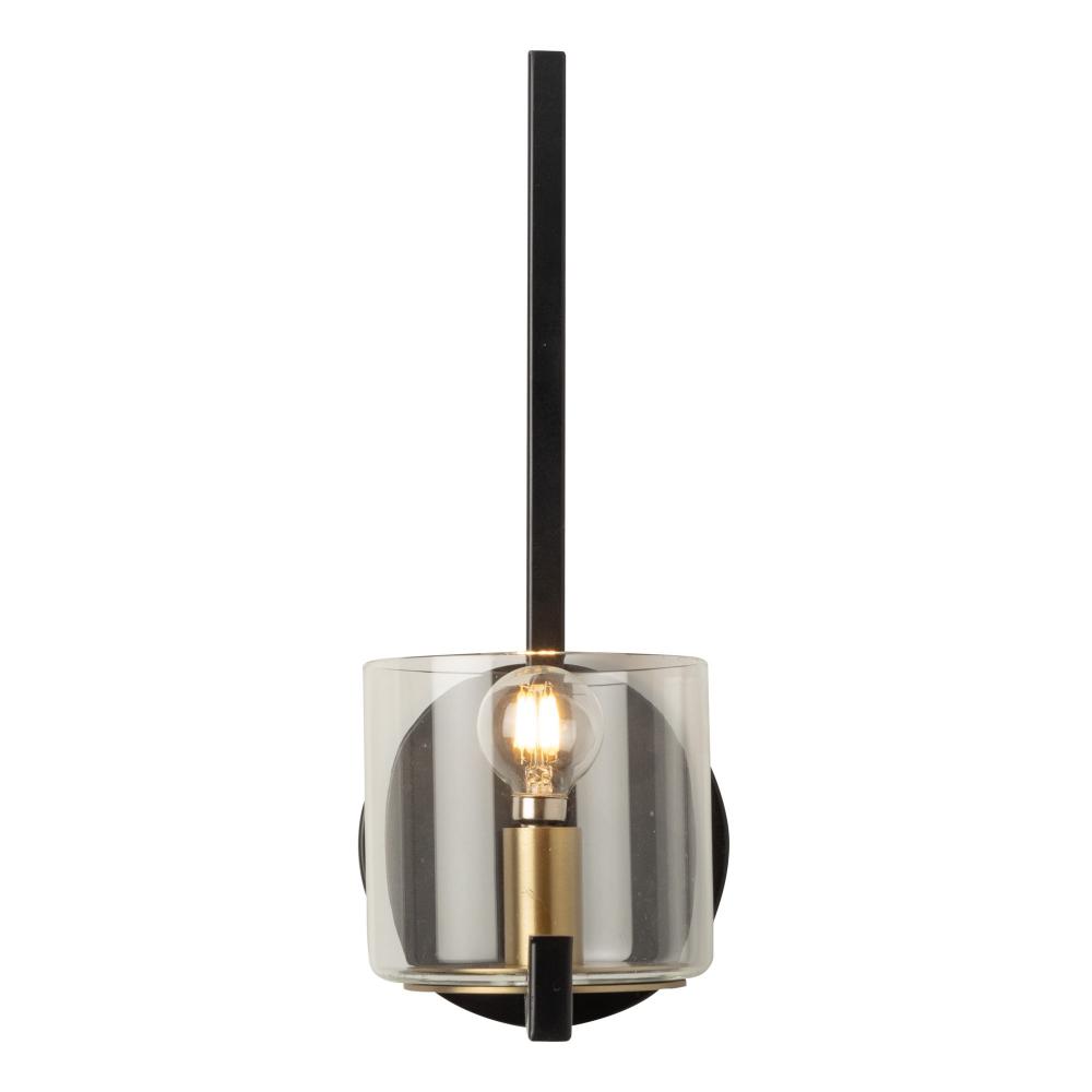 The Salinas Collection by designer Kevin Kraemer, has black frames complimented with brushed brass candles covered by clear cylinderical glassware. Single wall sconce model shown