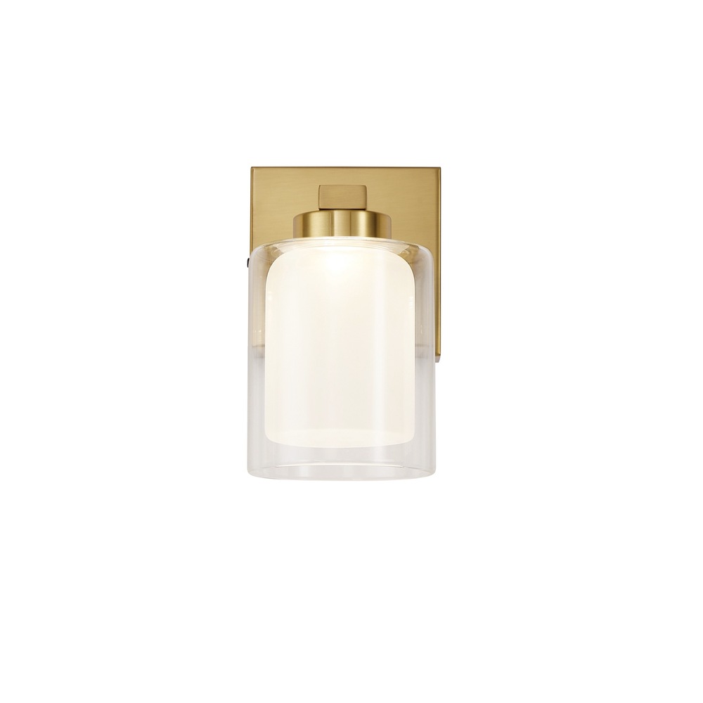 The Saville bathroom vanity collection boasts a distinctive double glass design, with a clear outer layer and a soft white inner layer that imparts a warm and inviting glow. To complement the elegant glasswork, the frame is adorned in a rich brushed brass finish, adding a touch of sophistication to the overall design of this exquisite bathroom vanity collection. Additionally, the models in this collection come with a convenient LED switch, allowing users to effortlessly adjust the color temperature from 3000, 4000, and 5000 kelvin for a customizable and ambient lighting experience. Single wall sconce shown. (Also available in a 3 and 4 light versions.)