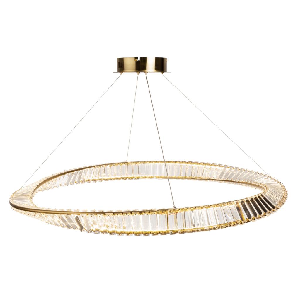 Sparkling from every angle, the Stella collection is simply timeless. The pendant is draped with authentic crystal and complimented with a brushed brass frame. As your eye follows the frame it twists around the crystal in a unique fashion. This pendant is illuminated by bright and energy efficient LEDs (3 sizes available).