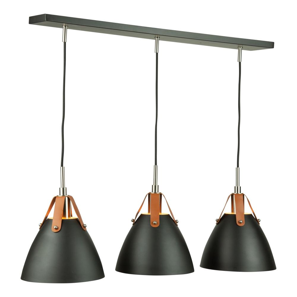 From designer Steven Sabados of S&C, the Tote collection is a definite fashion trend for your home or office décor. The matte black metal shades are suspended to the wiring with leather straps. The interior of the shades have a super reflective white finish for maximum light functionality. Two finishing touches for this design are the polished nickel accents, and the textile black wiring coverings.