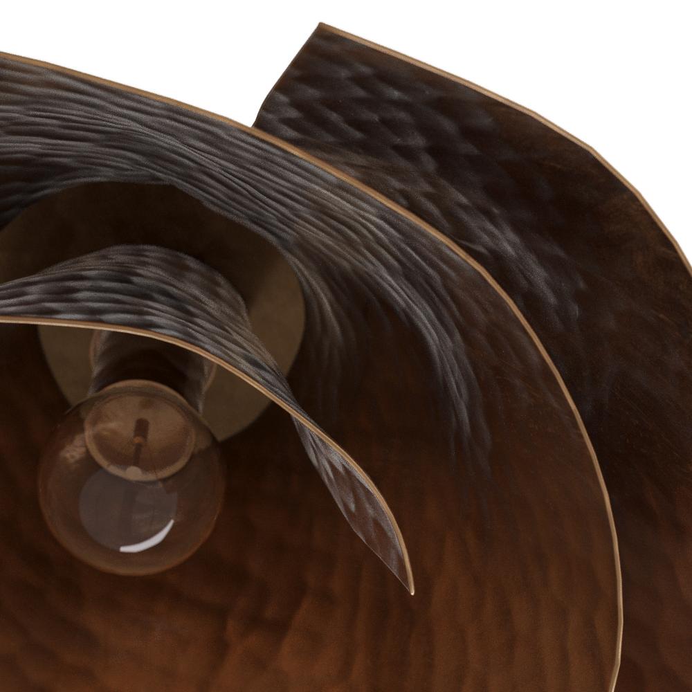 The captivating spirals found in sacred geometry inspired our spiral-shaped Arden. Its organic form projects light in between layers, allowing it to play on the vintage brass surface. This clever design can be used as a flush mount or as a sconce. Damp-rated, although limited covered outdoor conditions may affect finish. Finish will vary.