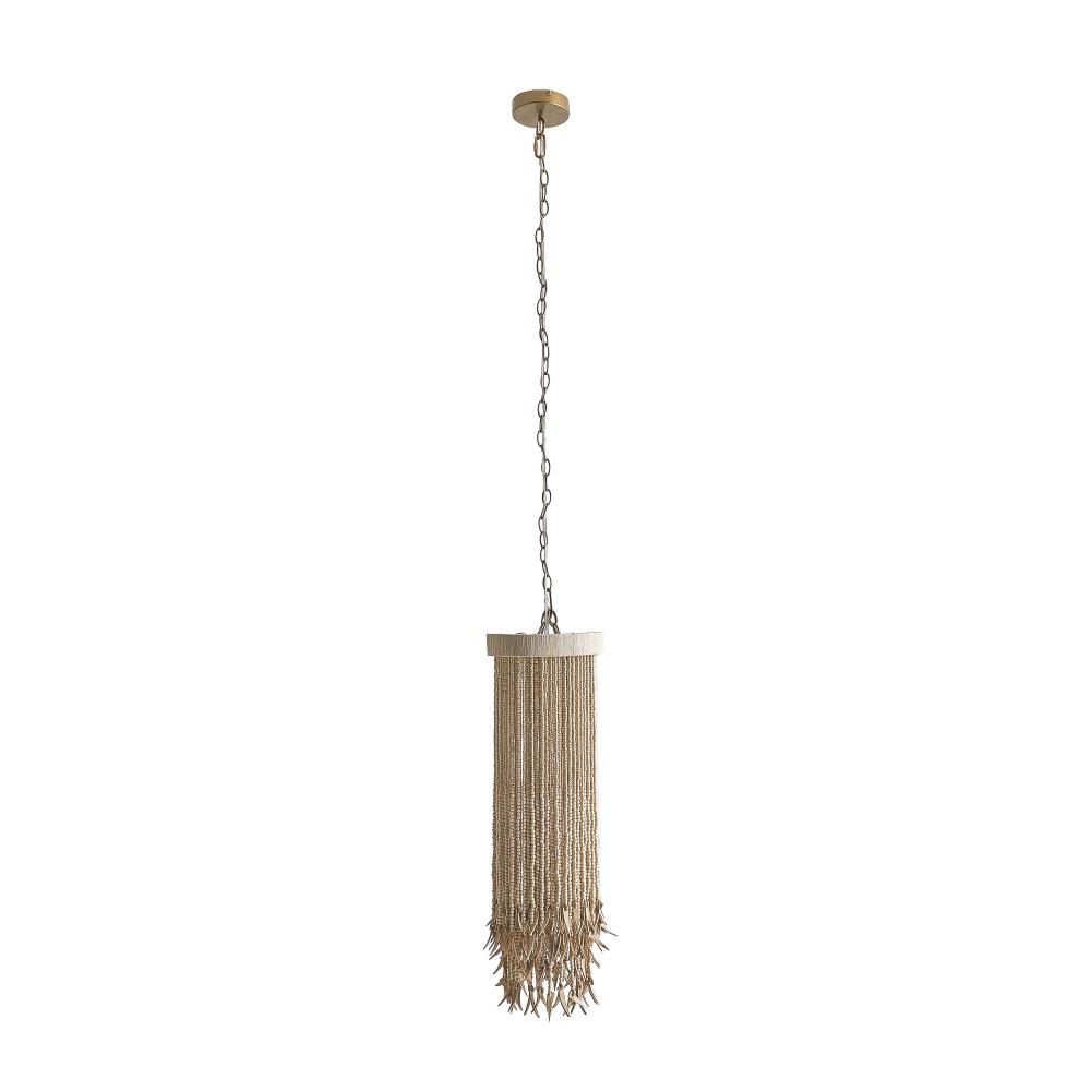 A smaller version of our classic Baja Chandelier, this natural design finds balance and defines beauty with organic materials. The layered concentric construction is crafted from natural wood and coconut beads strung along a painted white iron frame showcasing a mélange of neutral hues. Coconut shell talons hang from the wood bead strands. Though light and airy, this vertical pendant establishes a unique and natural presence. Finish will vary.
