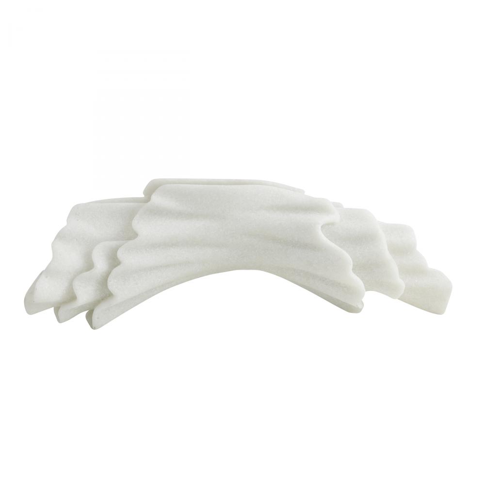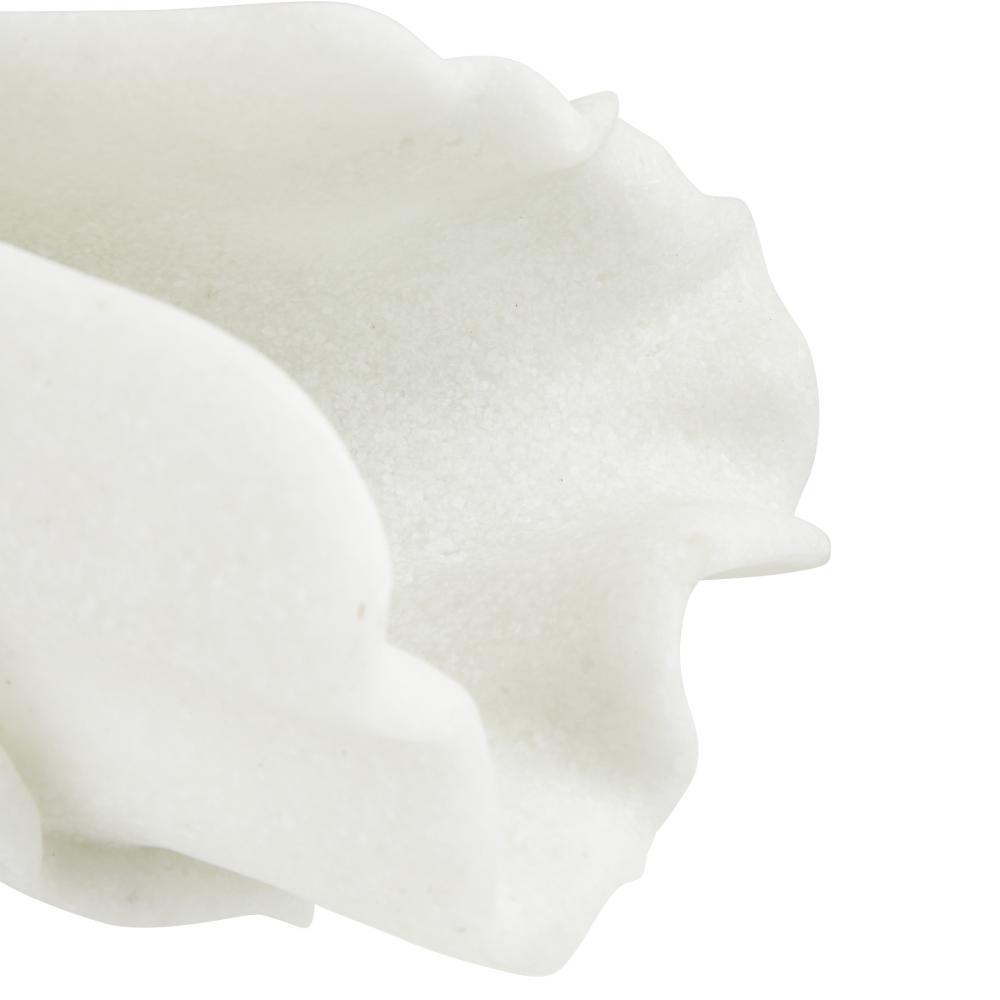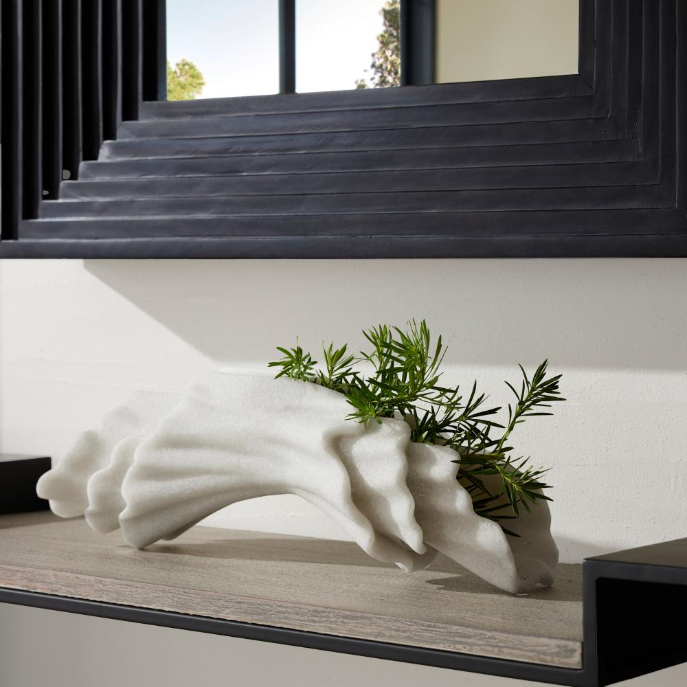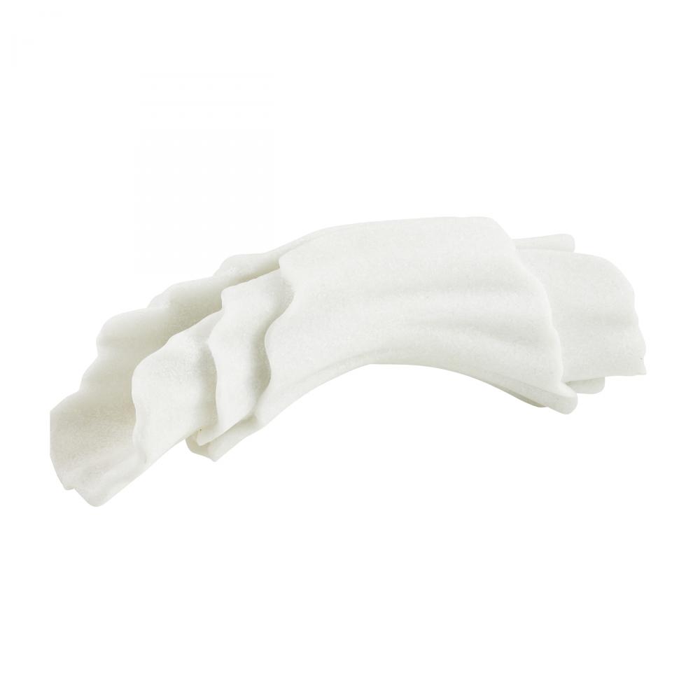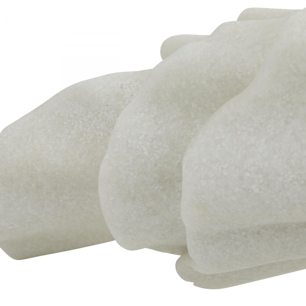A gestural sculpture of ivory ricestone cokmposite is carved to resemble a gathered bolt of fabric. The Carnegie is an elegant accent alone or displayed as a modernist centerpiece with a floral arrangement across the rippling form. Finish will vary.