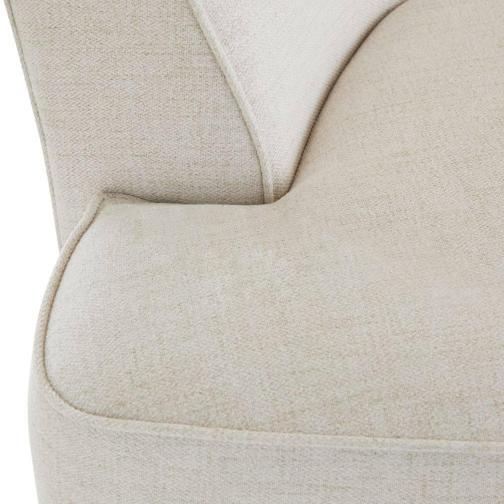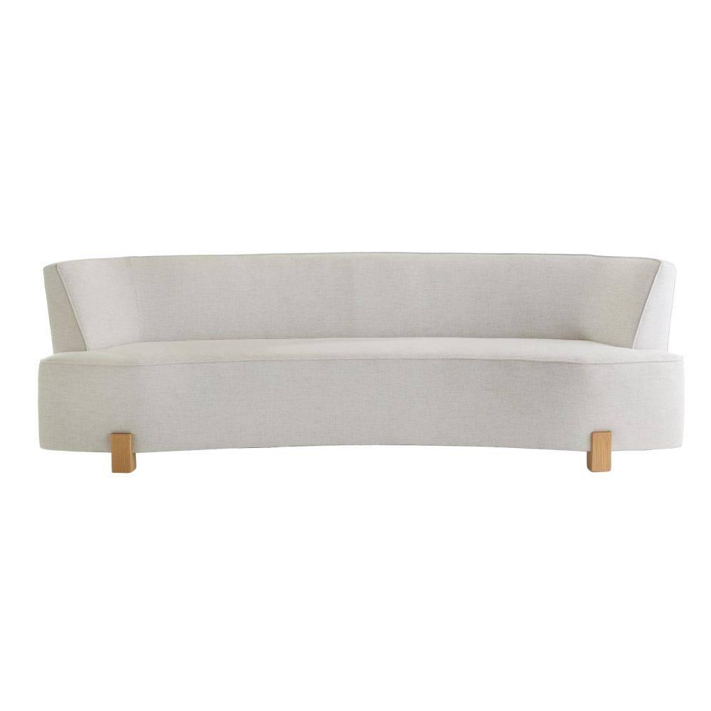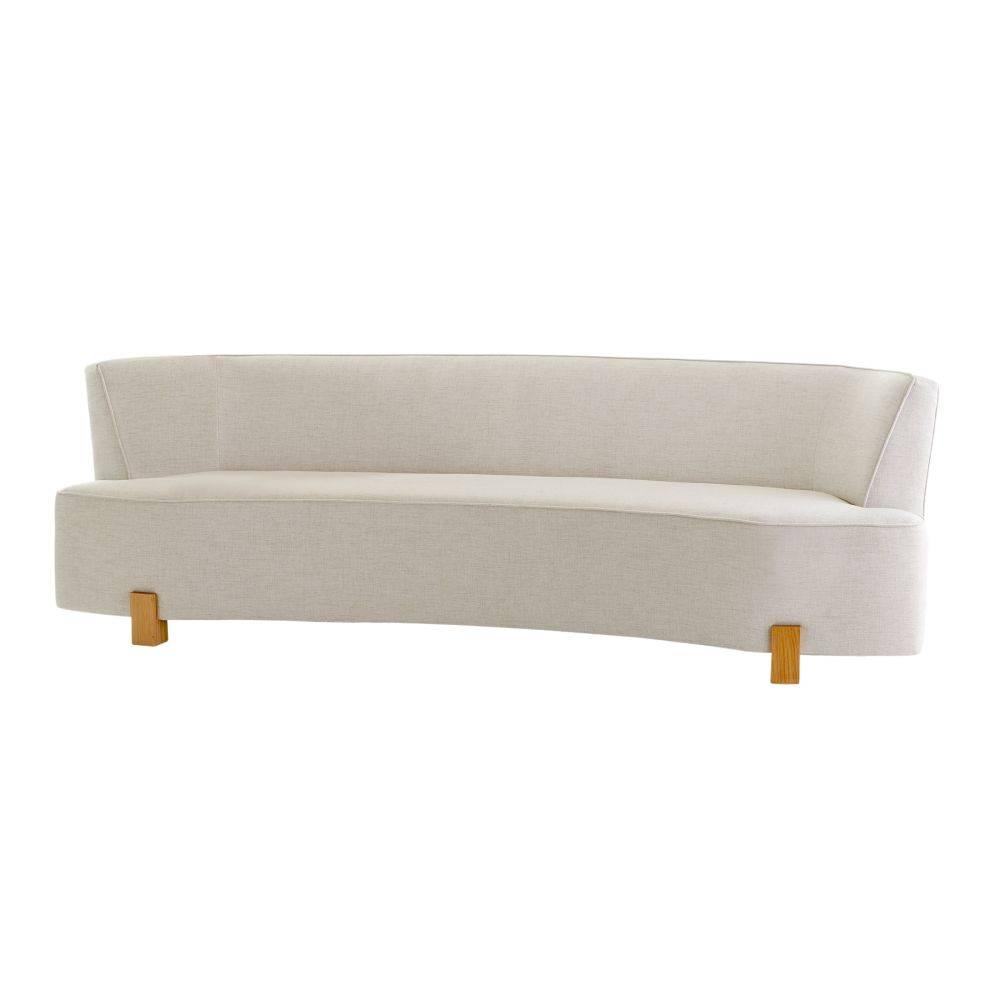 We upholstered the soft lines of the Claude sofa in light heron linen to set a sculptural tone. Gently curved along the back, it was designed to effortlessly cradle the body. Supported with four block legs of white oak. Finish will vary.