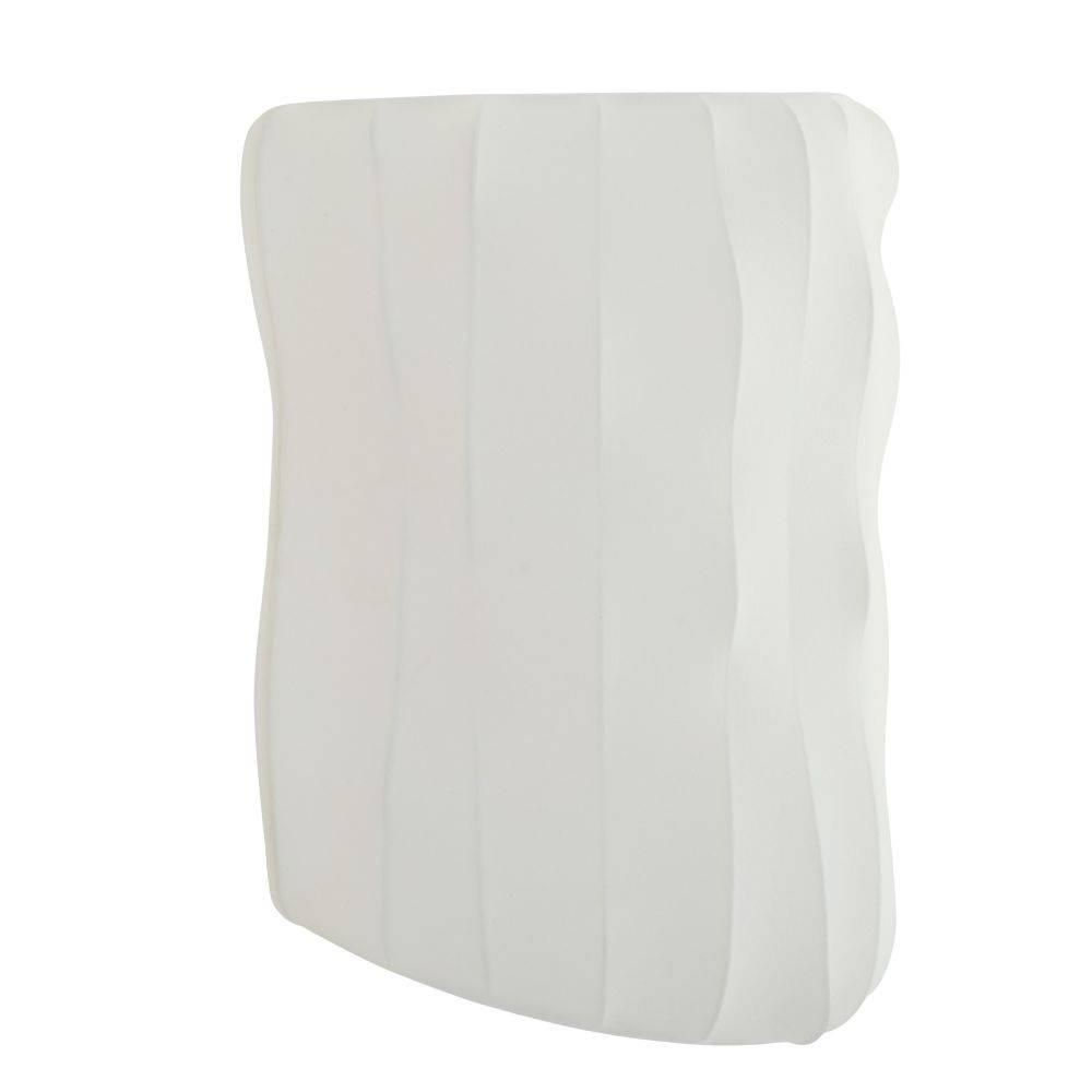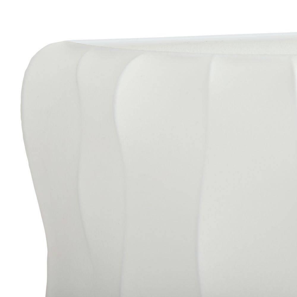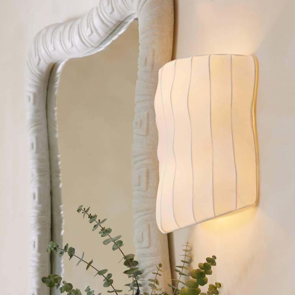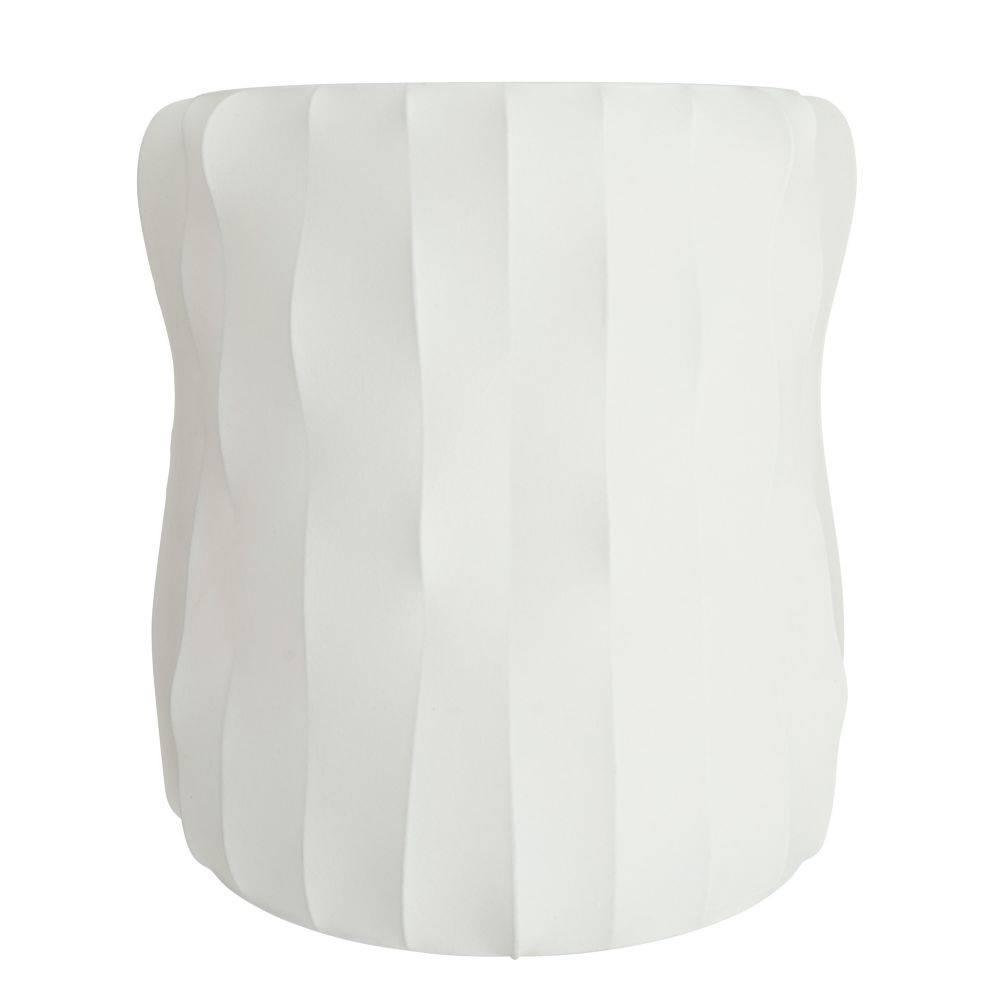Faux ivory vellum is stretched over a ribbed framework of antique brass-plated steel to form a curvaceous sconce. The simple yet gestural form allows illumination to take center stage. Damp-rated, although limited covered outdoor areas may affect finish. Finish will vary.
