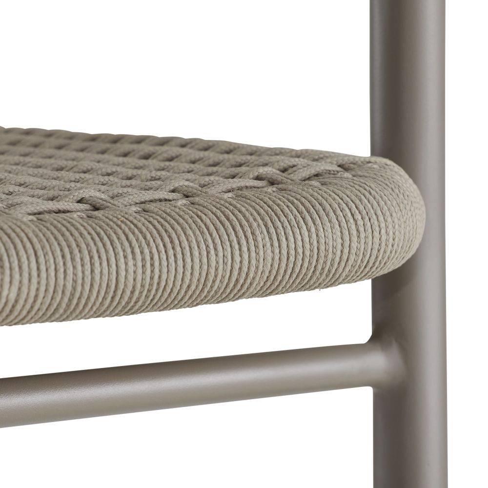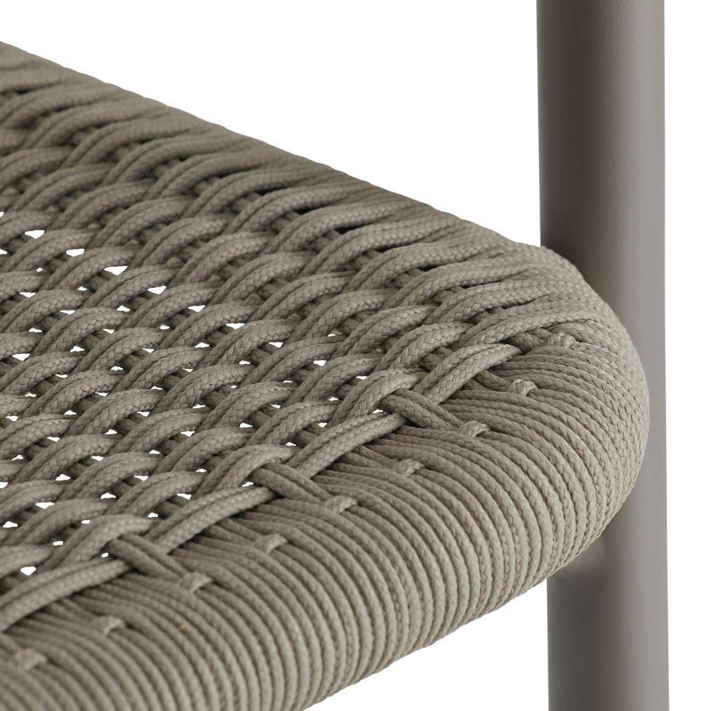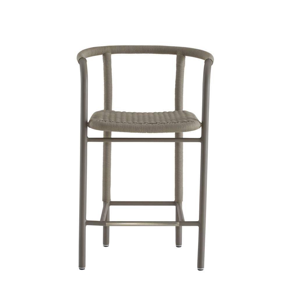 Wrapped woven details elevate the simple, bistro-style body of the Feller. The graphic nature of its aluminum form is highlighted with a tone-on-tone gray powder coat. Finished with a sturdy fossil synthetic rope seat, this contemporary counter stool makes a stylish addition to any outdoor setting.