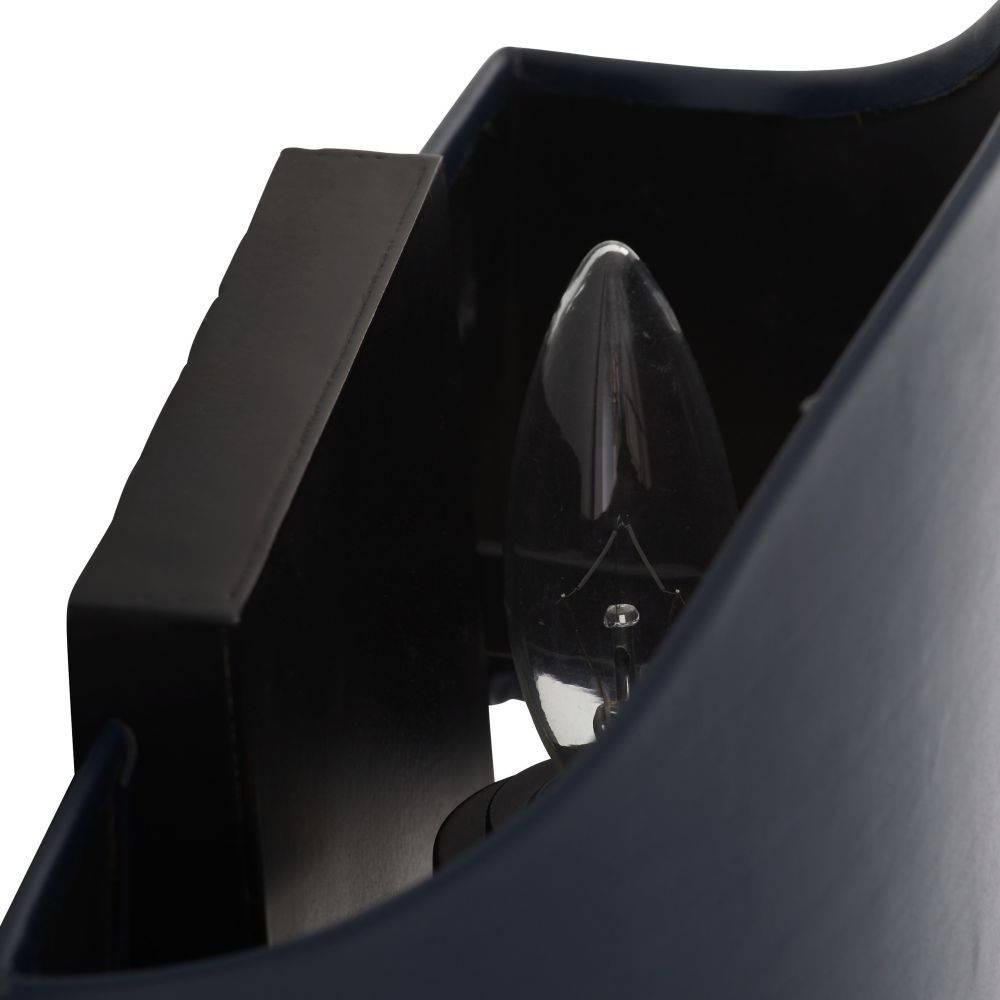 An amulet-inspired shade of navy leather evokes '70s inspired sculpture, updated for the modern age. This eye-catching fixture is accented with a charm-inspired stem of natural iron. Damp-rated, although limited covered outdoor areas may affect finish. Finish will vary.