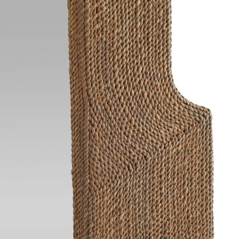 We gave the architecturally inspired Freeport an edge by wrapping it with tobacco-stained abaca rope. With a silhouette inspired by Indian architecture, it lends the perfect mix of graphic forms and tactile textures to any rustic or coastal space. Designed to be displayed both vertically and horizontally. Secured at the back with a cleat attachment. Finish will vary.