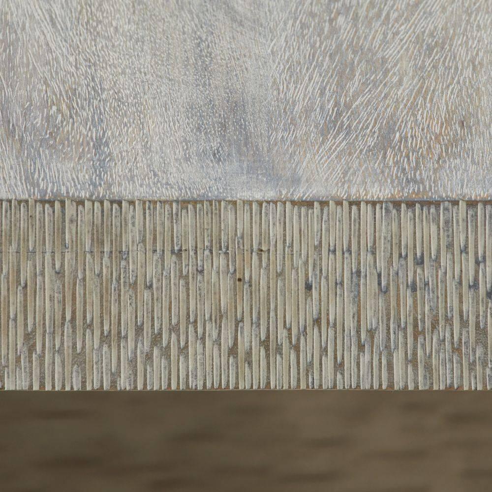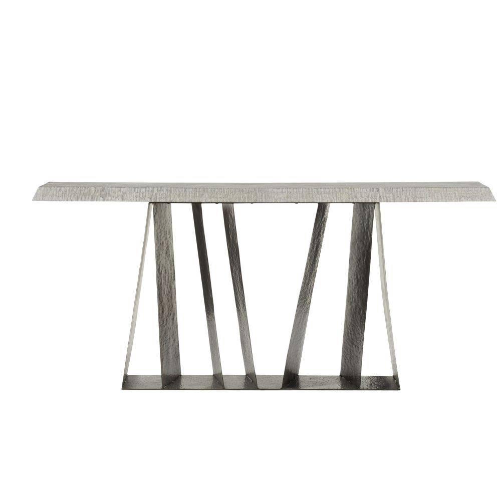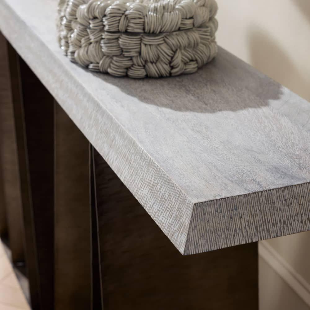 Inspired by architect Frank Lloyd Wright's iconic home, Fallingwater, the sculptural planes of our modernist console were designed to catch and reflect the light. The rippled surface of smoke mango wood is balanced on supports of carbon iron, delivering an eye-catching mix of materials. This console was designed with an intentionally shallow depth, making it an ideal addition to an accent wall or hallway. Wood will vary.