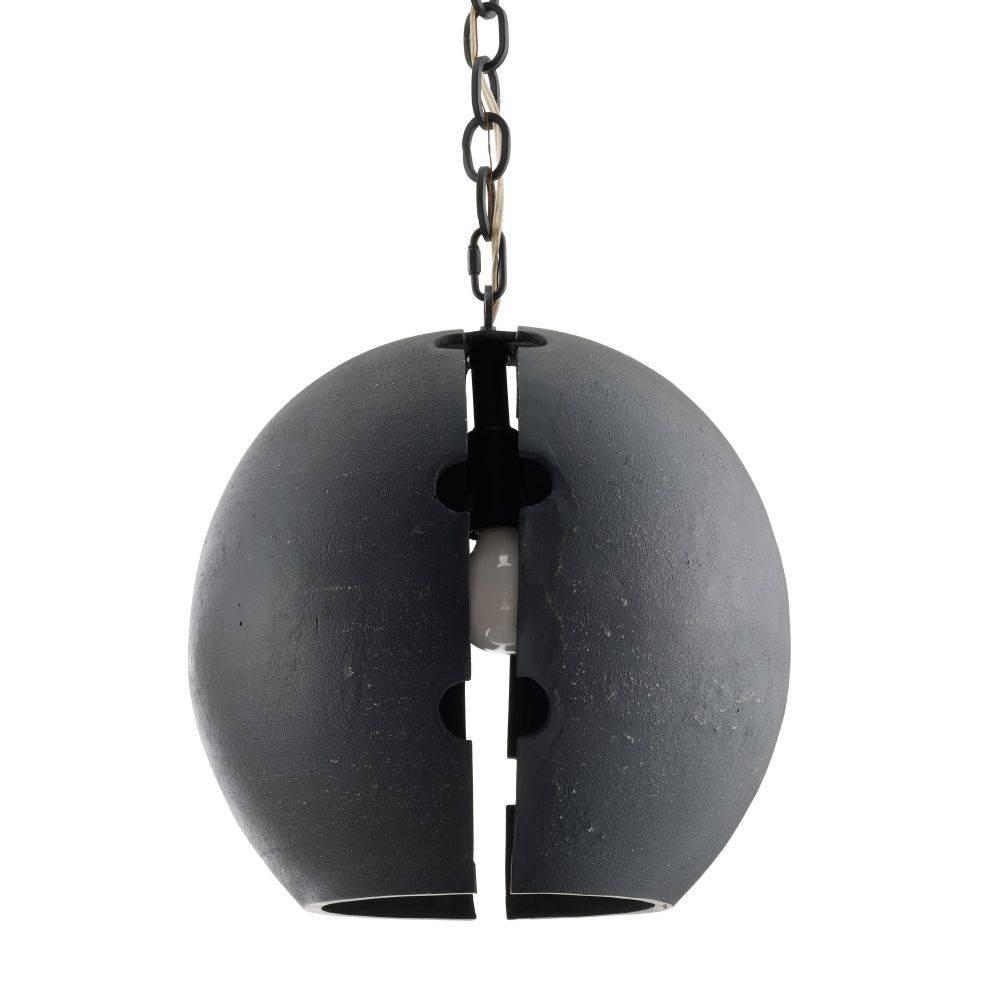 Inspired by an Indian bell, the dome form of the Hartland has the look of an ancient found form. Cast of aluminum in textured matte charcoal, the finish lets a hint of underlying silver peek through. The overscale shade's demi-lune cutout allows the bulb to disperse light with an exciting play of shadow. Damp-rated, although limited covered outdoor areas may affect finish. Finish will vary.