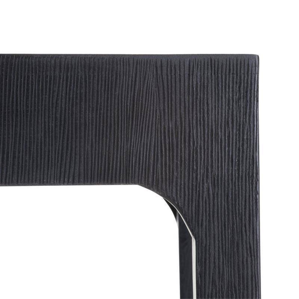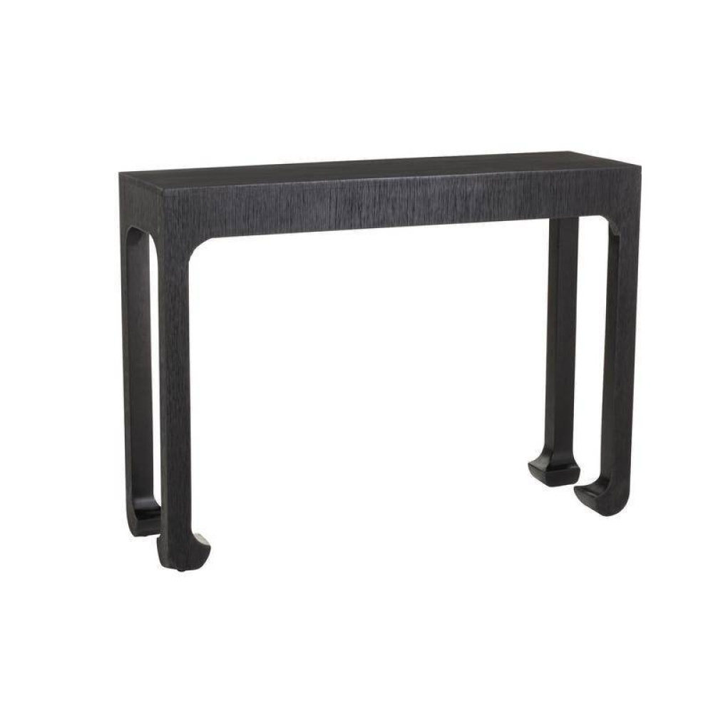 Slim in profile and crafted of ebony mango wood, the traditional parsons-style console is updated with hand-carved claw feet. Finish will vary.