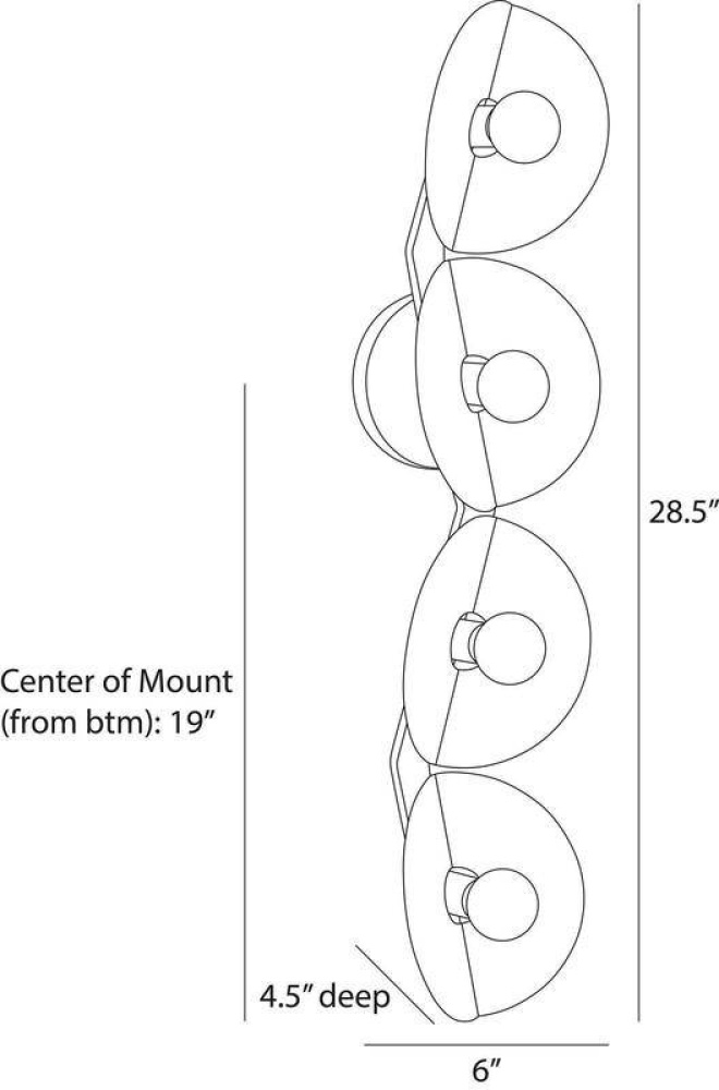 Bent metal dishes of hammered antique brass twist in alternate directions to lend a playful energy to the Itzia. This sculptural style can be mounted horizontally or vertically, giving it versatility. Finish will vary. Damp-rated, although limited covered outdoor conditions may affect finish.