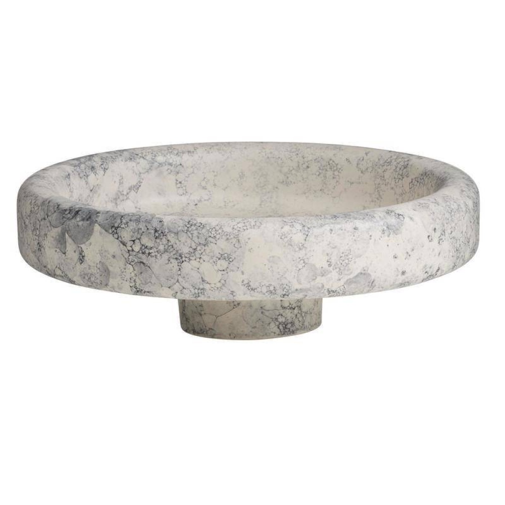 Shallow vessels used to float blossoms in Japanese flower displays were the muse for our hand-formed ceramic centerpieces. Glazed in a bubble finish in a thundercloud hue, each narrow pedestal shape will differ slightly. Finish will vary.