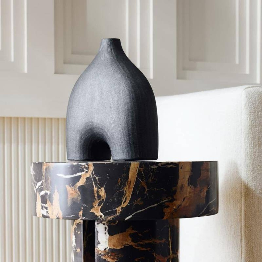 Ancient fertility figurines inform the silhouette of this hand-formed terracotta sculpture. Finished in matte charcoal, its subtle curves resemble a woman's hips. Finish will vary.