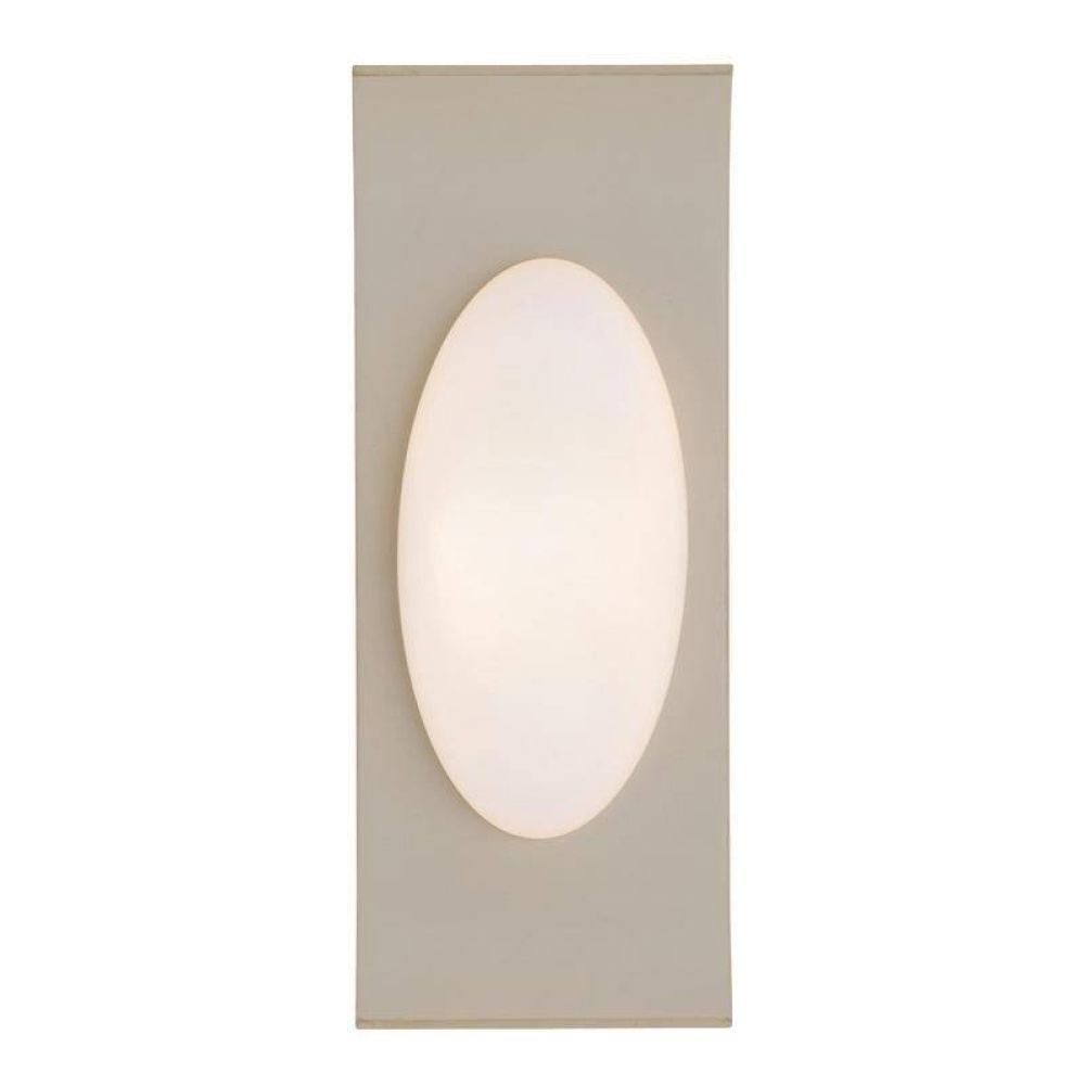 An equestrian-inspired sconce of bone leather adds a masculine appeal to any study or vanity. Centered by an oval opal globe, this minimalist style is even more dynamic when staged in a pair. Finish will vary. Damp-rated, although limited, covered outdoor conditions may affect finish.
