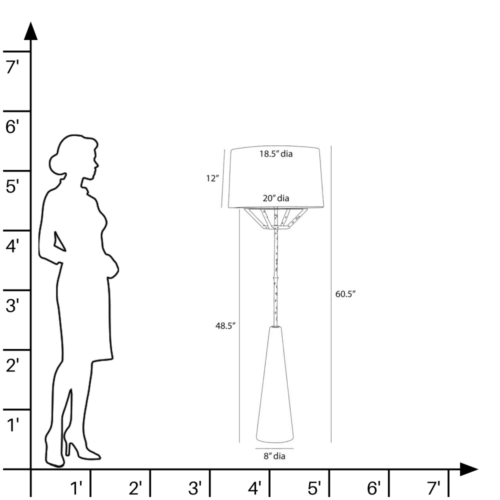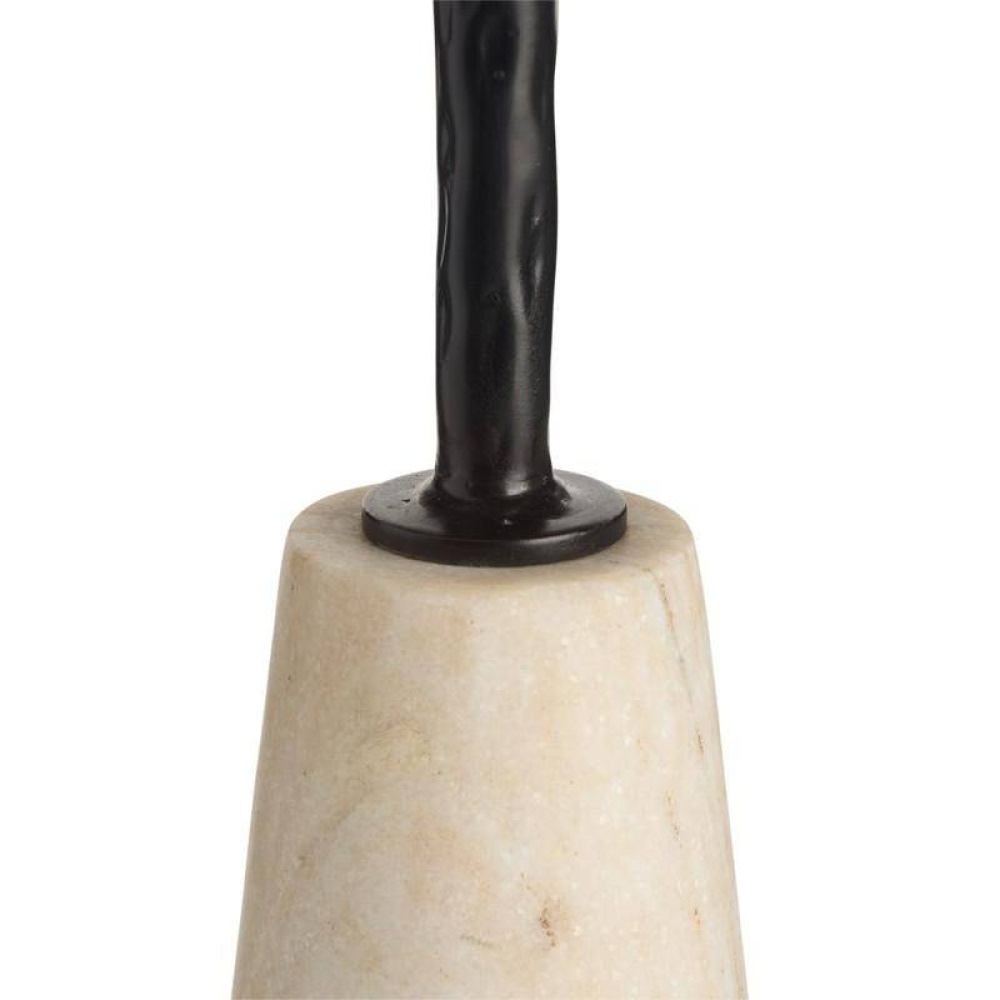 This forged natural iron and white marble floor lamp embodies innovative sculptural style. Extending from the conical base, natural iron arms appear to support the matching shade. Finish will vary.