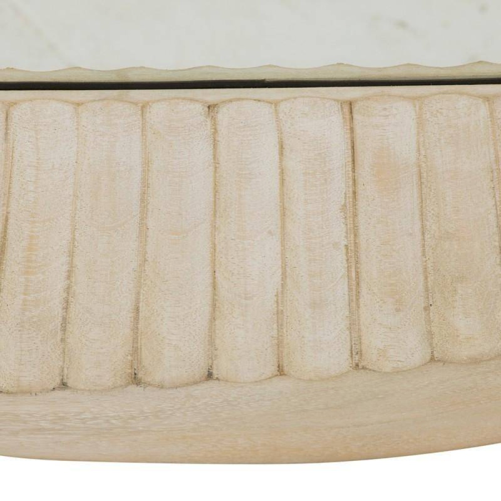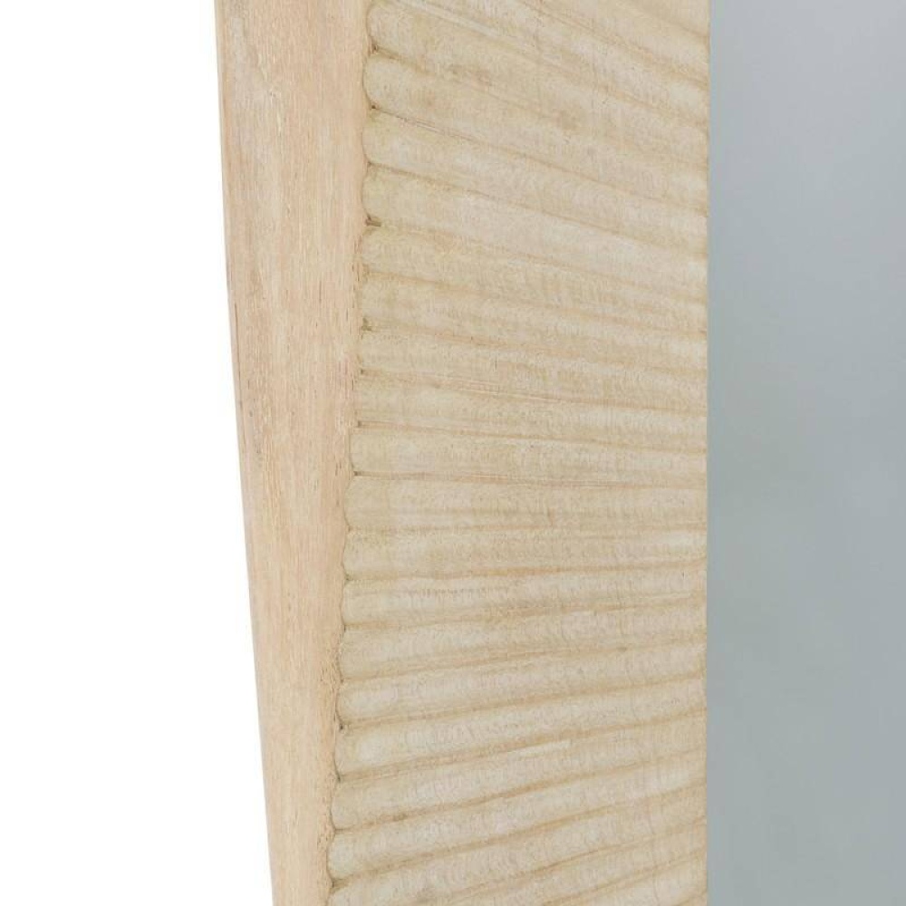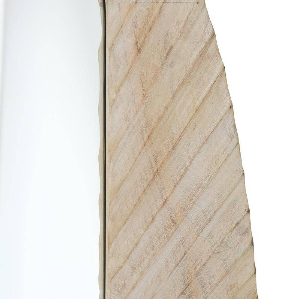 Inspired by the grooved finish of a tree slice, our hand-carved frame of whitewash mango wood is a naturally wonderful addition to an entryway. Subtle indentations add movement and texture. This rectangular glass mirror can be hung horizontally or vertically by a back cleat. Hanging hardware included. Finish will vary.