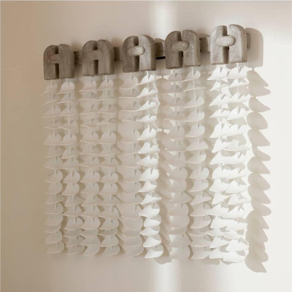 Echoing the design language of our Melt entry table, the Melt wall decor's decorative smoke wood armature supports a cascade of hand-formed petals in white gesso-plated iron, strung in a series of vertical rods. A study in material contrast and diverse movement, this compelling piece suits a wide range of spaces. Finish will vary.