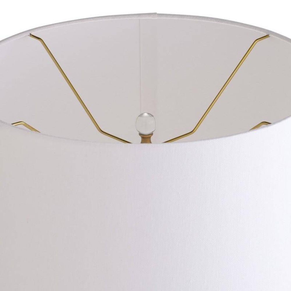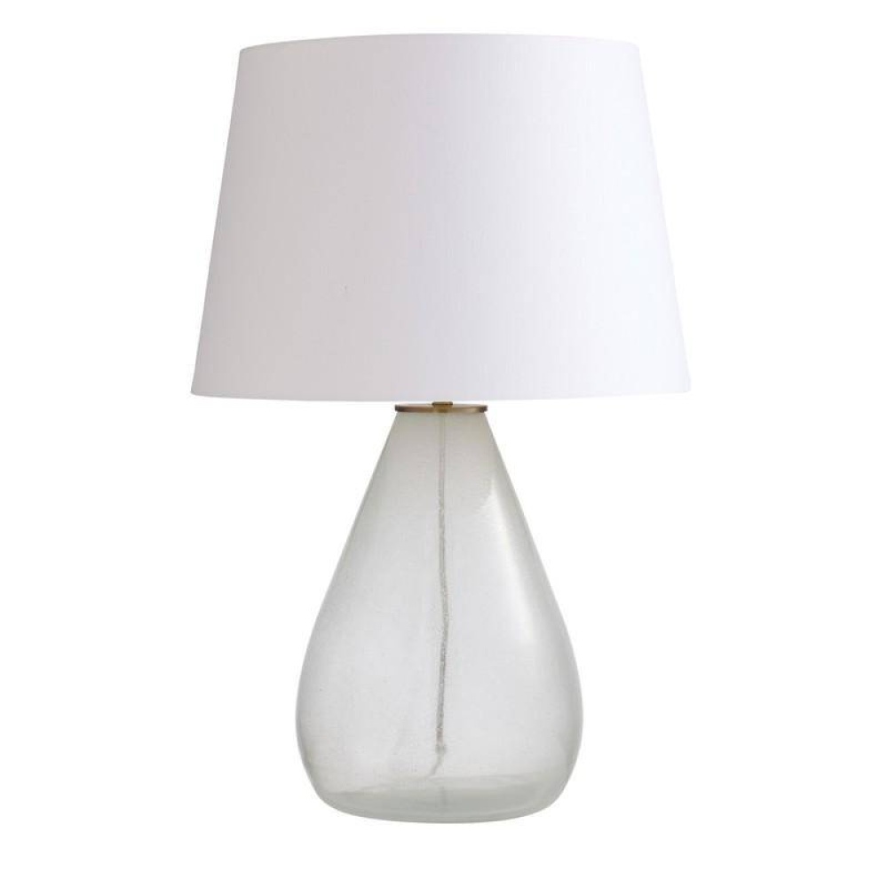 A seedy glass vase is mouth-blown to create its clear, minimalist features, which are further highlighted when the lamp is lit. A white linen drum shade and lined in white cotton complements the Tiber's large-scale, sleek formation. Topped with antique brass hardware and a clear glass ball finial on an antique brass base. Finish will vary.