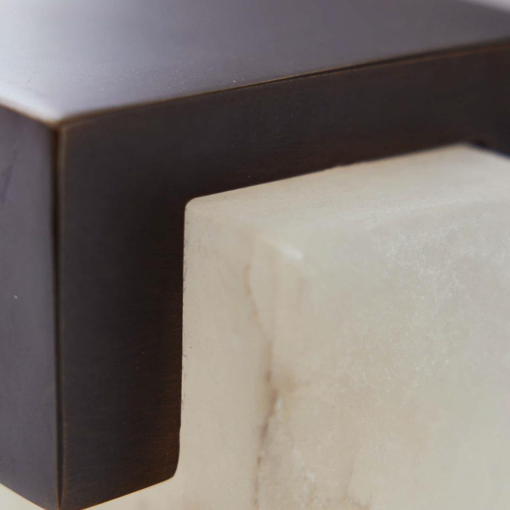 AS BOOKENDS OR SCULPTURE, OUR WHITE ALABASTER AND BRONZE STEEL BOOKENDS CELEBRATE ELEMENTAL GEOMETRY. THE PIECES, WHICH CAN BE DISPLAYED IN VARIOUS ORIENTATIONS, CAN BE USED TO FLANK BOOKS OR AS STUNNING SCULPTURAL OBJECTS. FINISH WILL VARY.